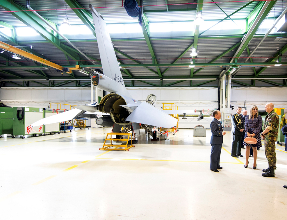 haar rond bij het 313-squadron, waar zij sprak met vliegers, ondersteunend personeel (planning, navigatie en inlichtingen) en technici over hun werkzaamheden.Een van de gespreksthema’s was de verplaatsing van vijf F-16 vliegtuigen naar de Baltische staten in het kader van het roulatieschema van de NAVO. De Nederlandse F-16’s droegen daar gedurende vier maanden bij aan de bewaking van het luchtruim. Koningin Máxima doorliep het proces van een vluchtvoorbereiding, nam deel aan een reguliere trainingsvlucht en was aansluitend aanwezig bij de debriefing van de F-16 vluchtopdracht. Zo kon zij een goed beeld krijgen van het teamwork dat nodig is om een vlucht tot een goed einde te brengen.