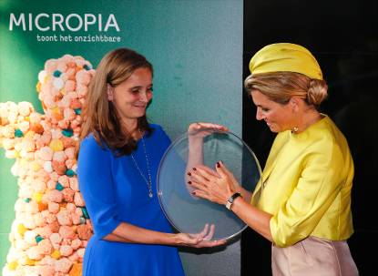 Microben zijn niet vies; we hebben ze hard nodig om gezond te kunnen leven. Een mens draagt ongeveer anderhalve kilo microben met zich mee. Twee derde van het leven op aarde bestaat uit micro-organismen die niet te zien zijn zonder microscoop. Zo past bijvoorbeeld een bacterie - een van de kleinste microben - meer dan één miljoen keer op de punt van een naald. Er zijn meer dan 100 miljoen verschillende soorten microben. Sinds september 2014 heeft deze fascinerende microwereld zijn eigen museum: Micropia, een onderdeel van Artis in Amsterdam. Hare Majesteit Koningin Máxima opende het op 30 september en werd rondgeleid door het hoofd van Micropia, Mevrouw Hensel –Wisse Smit.