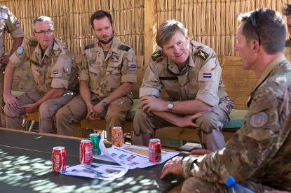 Zijne Majesteit Koning Willem-Alexander bracht 18 en 19 februari een bezoek aan de Nederlandse troepen in het Afrikaanse land. Contingentscommandant kolonel Stephan Kooijman leidde de Koning rond over kamp Castor in Goa. De Koning sprak vervolgens uitgebreid met militairen binnen én buiten het kamp. Bij het vertrek uit Goa stak de Koning zijn waardering niet onder stoelen of banken: “Ik ben trots op onze Nederlandse militairen hier in Mali. Ze doen belangrijk werk voor VN-missie Minusma en dat onder zware omstandigheden bij een temperatuur van boven de 35 graden.” De volgende dag had de Koning een korte ontmoeting met president Ibrahim Boubacar Keïta van Mali en bezocht hij het hoofdkwartier van Minusma in Bamako.