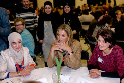 Jessica Ayud Manzano was een van de vrijwilligers met wie Koningin Máxima kennismaakte. “Het is voor onze cursisten vaak moeilijk om te solliciteren op de arbeidsmarkt. Vaak wordt in de eerste plaats de taalbeperking gezien. Wij willen heel graag dat de talenten daarachter gezien worden.” Halleh Ghorashi, hoogleraar Diversiteit en Integratie aan de Vrije Universiteit van Amsterdam stelde tijdens de bijeenkomst dat door een taalachterstand veel talent onbenut blijft. “Werkgevers zien vaak verborgen talenten over het hoofd van mensen met een taalachterstand.”