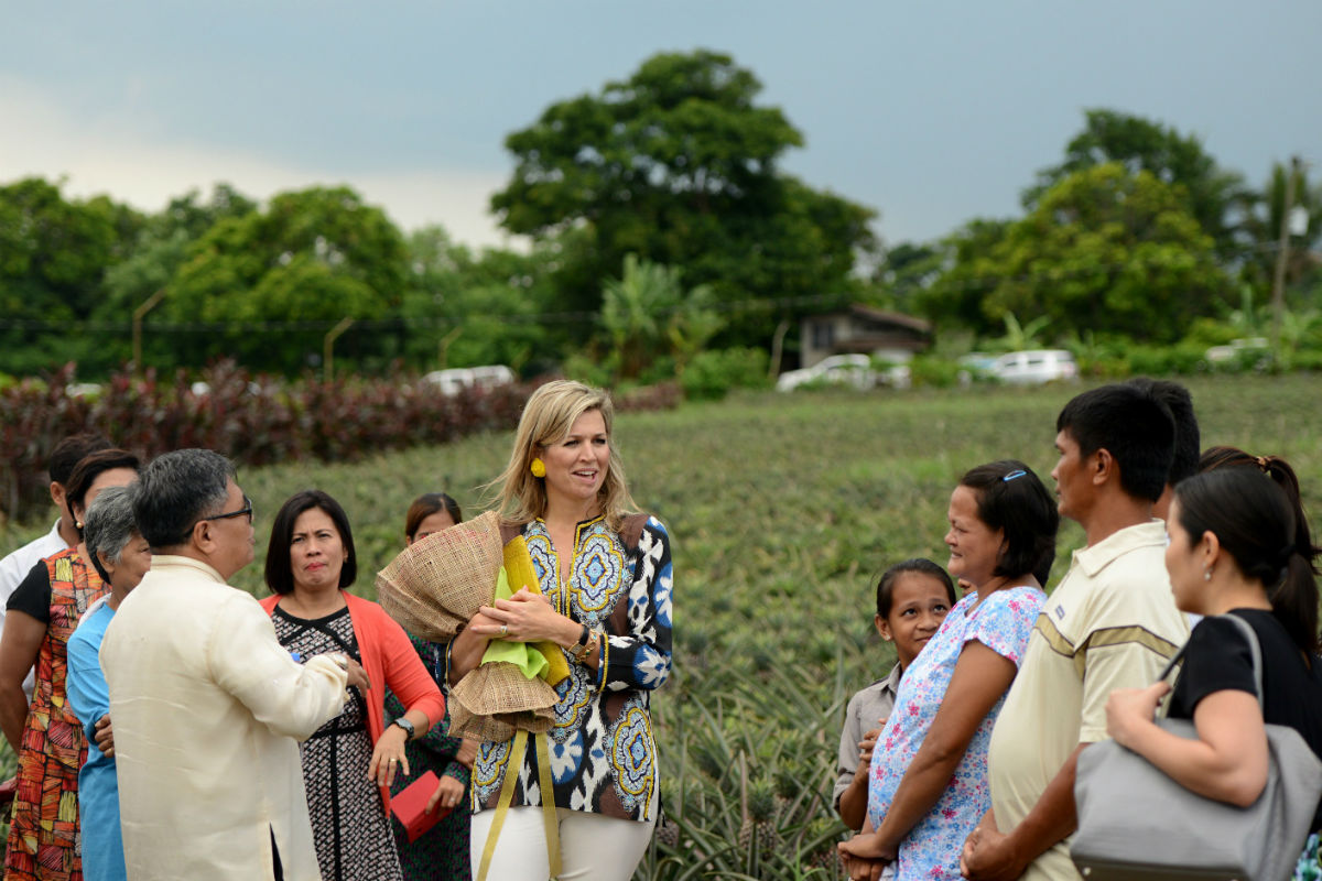 Koningin Máxima sprak in de hoofdstad in Manilla met president Aquino en met de minister van Financiën, de gouverneur van de Centrale Bank en de voorzitter van het parlement. In de provincie Cavite, een belangrijke landbouwregio, bezocht zij een ananasplantage. Daar praatte zij met lokale ondernemers over wat financiële diensten als een bank- of spaarrekening, een lening of verzekering kunnen betekenen voor hun economische ontwikkeling.