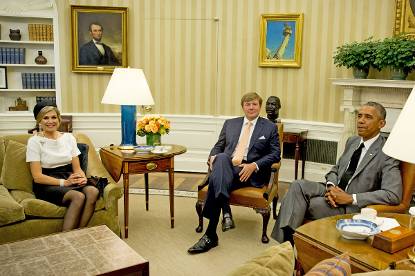 “We have 400 years of history between our two countries. In Europe, that doesn’t mean a lot, but in the United States that is as old as it gets. And so the Dutch are some of our oldest and more precious allies. That continues to this day.” Dit zei President Obama op de eerste dag van het officiële bezoek dat Zijne Majesteit Koning Willem-Alexander en Hare Majesteit Koningin Máxima van 1 tot en met 3 juni brachten aan de Verenigde Staten. De President ontving het Koningspaar in het Witte Huis, waar de Koning namens Nederland het Amerikaanse volk bedankte voor de bijdrage aan de Bevrijding van Nederland en de inspanningen voor zeventig jaar vrede en vrijheid.