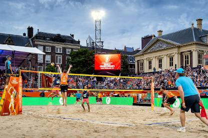 In de zomer van 2015 was Nederland het kloppend hart van de beachvolleybalwereld. Van 26 juni tot en met 5 juli werd in ons land het Wereldkampioenschap Beachvolleybal georganiseerd. Tien dagen lang streden de beste 48 mannenteams en 48 vrouwenteams om de wereldtitel. Zijne Majesteit Koning Willem-Alexander woonde in Den Haag de openingsceremonie bij en was ook bij de finale. De andere speelsteden waren Amsterdam, Apeldoorn en Rotterdam. Nederland koos voor beeldbepalende speellocaties, zoals de Hofvijver in Den Haag en de Dam in Amsterdam.