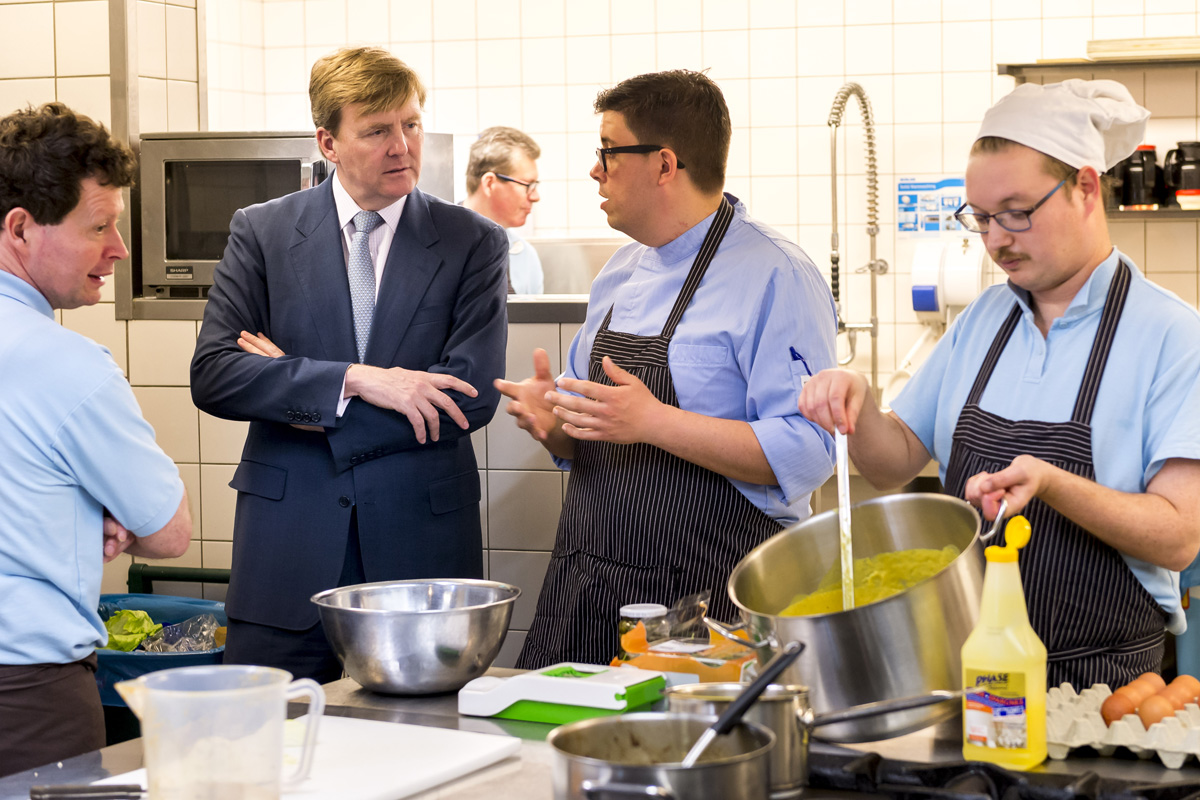Zijne Majesteit Koning Willem-Alexander ging op 12 maart naar Roermond om een kijkje te nemen bij De Pastorie en de ervaringen te horen van de mensen die daar werken of gewerkt hebben. Een van hen was de autistische Tom Jongen, die na zijn leerwerkperiode een vaste baan heeft gevonden in restaurant Het Arresthuis in Roermond. Hij herinnerde zich nog goed hoe het begon. “Ik begon met servetjes vouwen. ‘Horeca en autisme gaan nooit samen’, dacht ik. Maar ik heb een grote drive!”