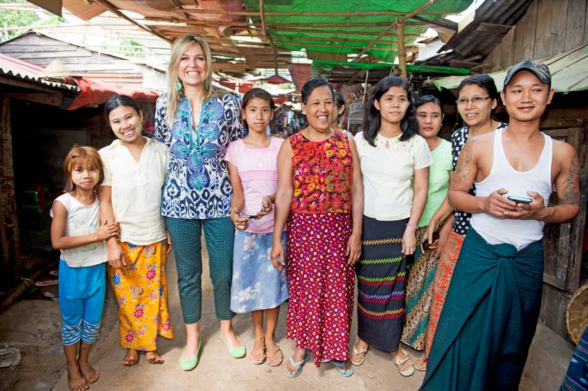 Hare Majesteit Koningin Máxima bezocht het land van 30 maart tot 1 april als speciale pleitbezorger van de secretaris-generaal van de Verenigde Naties voor inclusieve financiering voor ontwikkeling. Zij was op uitnodiging van President Thein Sein aanwezig bij de lancering van de strategie, en hield een toespraak op de Yangon University voor studenten over het belang van goede toegang tot financiële diensten. Daarbij wees ze op de ongekende mogelijkheden van mobiel bankieren voor Myanmar.