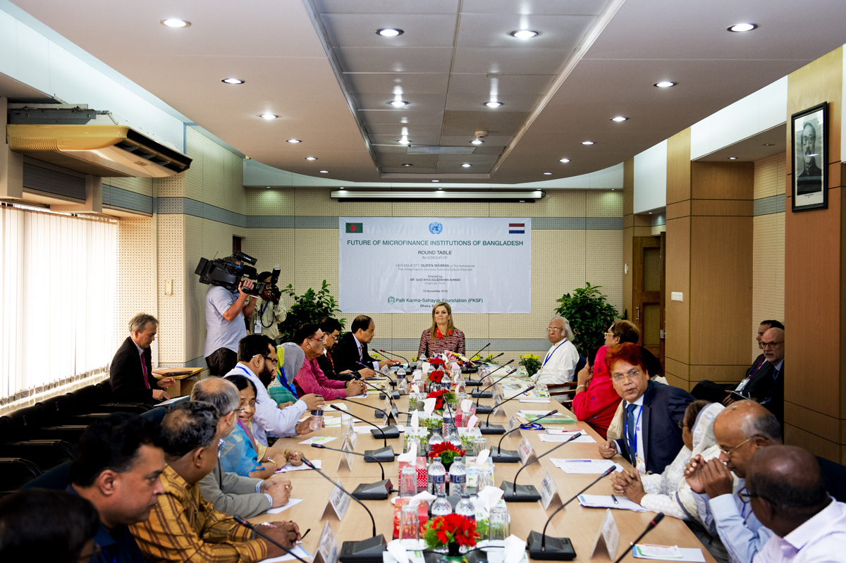 Hare Majesteit Koningin Máxima bezocht Bangladesh van 16 tot en met 18 november. Als speciale pleitbezorger van de secretaris-generaal van de Verenigde Naties voor inclusieve financiering voor ontwikkeling, besprak ze de voortgang op dit gebied met onder anderen minister-president Sheikh Hasina. Zij liet zich uitgebreid informeren over bKash, eensysteem voor mobiel bankieren met een speciale app op de telefoon. Geldzaken regelen wordt op die manier veel goedkoper, veiliger en makkelijker. Koningin Máxima bezocht een kledingfabriek met werknemers die via bKash hun salaris ontvangen. Een van hen vertelde haar dat ze zich veel veiliger voelt nu ze ’s avonds na haar werk niet meer met een loonzakje met contant geld over straat hoeft.