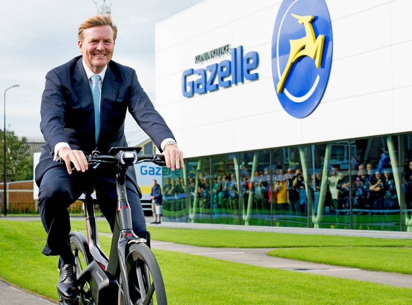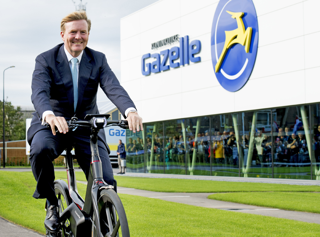 Tijdens een rondleiding door de fabriek kreeg de Koning uitleg van Robbie Koendjibiharie, een van de 350 medewerkers van Gazelle. Ook maakte hij een ritje op een nieuw model e-bike over de testbaan.
