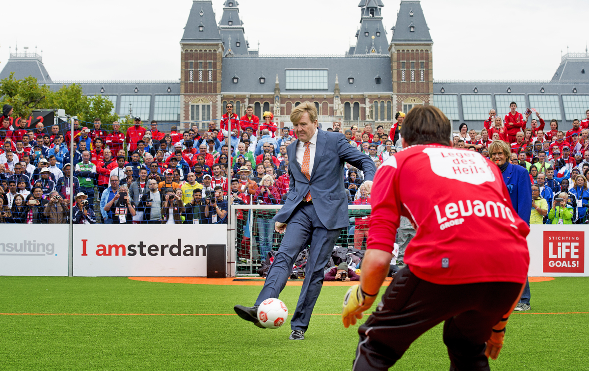 Meer dan 500 mannen en vrouwen van 63 teams vertegenwoordigden hun land tijdens het wereldkampioenschap voetbal voor dak- en thuislozen dat van 12 tot 19 september in Amsterdam op het Museumplein werd georganiseerd. Zijne Majesteit Koning Willem- Alexander opende de Homeless World Cup met het nemen van penalty’s en vuurde de Nederlandse vrouwen- en mannenploeg aan in hun wedstrijden tegen Argentinië en Noord-Ierland.