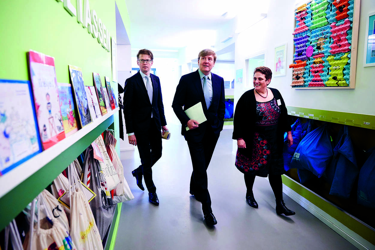 De gedachte achter passend onderwijs is dat optimaal rekening wordt gehouden met de talenten en beperkingen van leerlingen. Maar hoe pakt dit in de praktijk uit voor leerlingen, docenten, schoolleiders en ouders? Om hierover van gedachten te wisselen met de direct betrokkenen, ging Zijne Majesteit Koning Willem-Alexander op 11 februari op werkbezoek met staatssecretaris Sander Dekker van Onderwijs, Cultuur en Wetenschap. In Oegstgeest bezochten zij de prof. dr. Leo Kannerschool, een school voor voortgezet speciaal onderwijs die zich vooral richt op leerlingen met autisme. Daarna gingen zij naar De Springplank in Leiden, een reguliere Christelijke basisschool met bovengemiddeld veel leerlingen die extra ondersteuning nodig hebben. Gespreksthema’s op beide scholen waren onder meer de participatie van ouders en de samenwerking met zorgverleners en jeugdhulpverleners.
