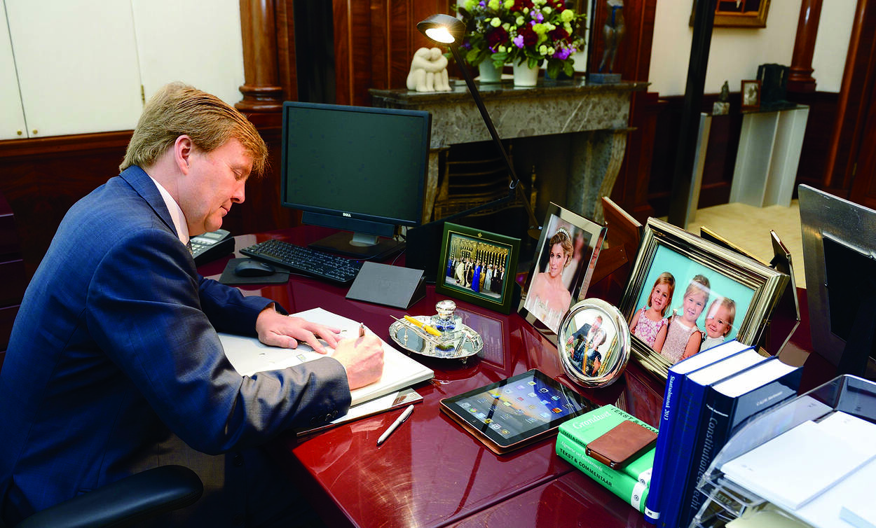 De Koning heeft geen plaatsvervanger en tekent alle wetten en besluiten zelf. Bij verblijf in het buitenland tekent de Koning daarom in spoedeisende gevallen de wetten en besluiten op zijn tablet. Dat gebeurde bijvoorbeeld op 2 november, toen de Koning de Wet tot wijziging van de Waterwet ondertekende tijdens het Staatsbezoek aan Australië. Eenmaal terug in Nederland ondertekende de Koning het origineel, zoals gebruikelijk, alsnog met de pen.