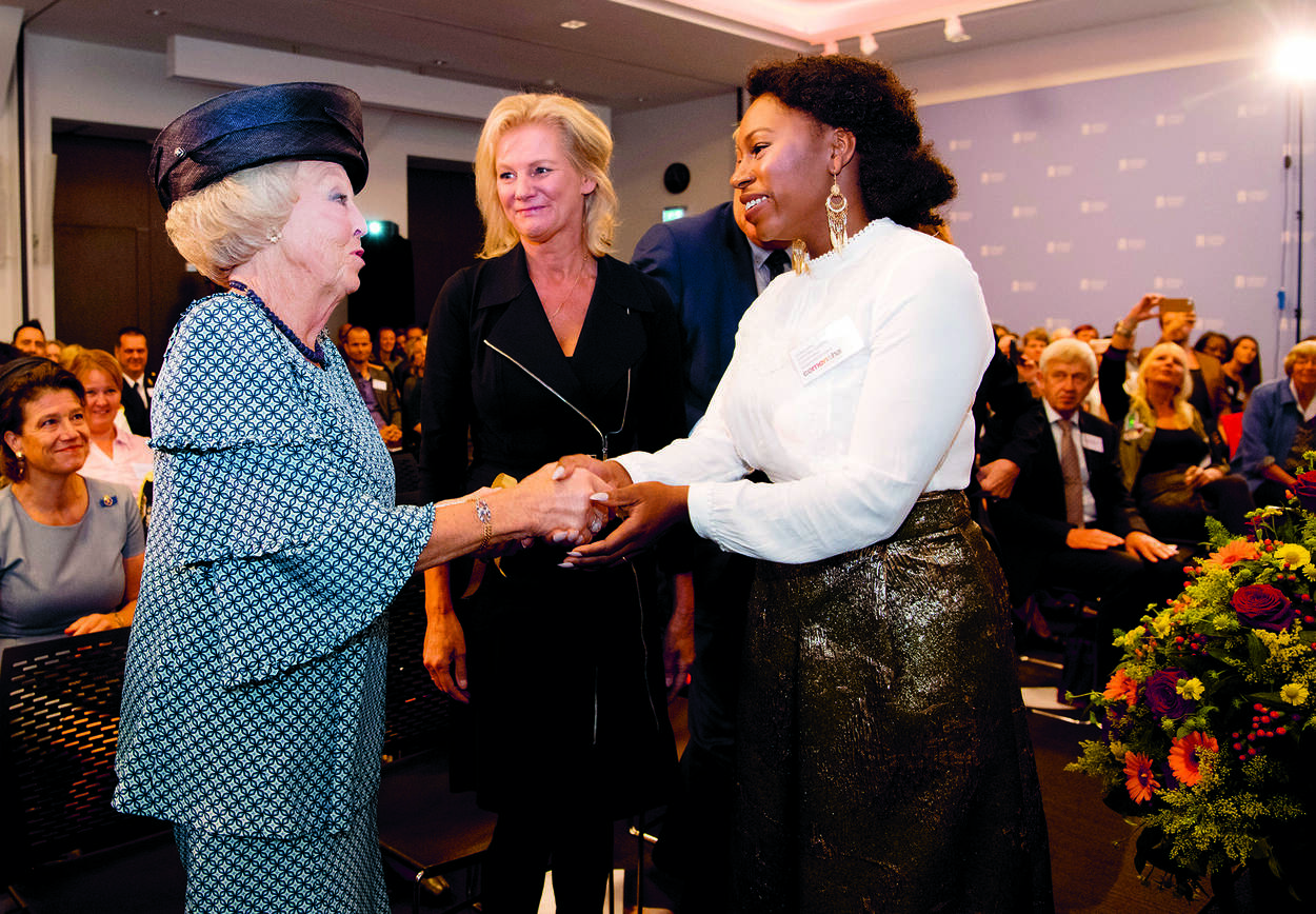 Hare Koninklijke Hoogheid Prinses Beatrix woonde op 22 september in Den Haag het jubileumcongres van CoMensha bij. Zij luisterde samen met de andere bezoekers naar het verhaal van ‘overlever’ Edith-Bernadette Poot, die zelf slachtoffer was van een loverboy. “De wereld van de gedwongen prostitutie is een wereld waarin je zelfbeeld je wordt afgenomen en waarin je identiteit wordt weggehaald. Een wereld waarin jij en ik er niet toe doen. Negen jaar geleden is het me gelukt om op te staan en weg te gaan. Ik moest daarvan zelf de gevolgen dragen: te weinig bewijs voor een strafzaak, geen erkenning en torenhoge schulden. Ondanks dit alles is het mij gelukt om terug naar school te gaan en twee diploma’s te halen.”