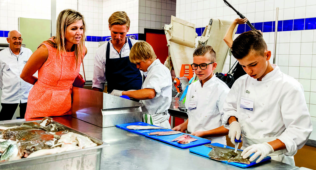 Op het Pontes Pieter Zeeman college in Zierikzee ontmoette de Koningin scholieren en gastdocenten van de Zilte Academie Zeeland, een expertisecentrum voor koken met Zeeuwse producten. Daar vervolmaakte zij met hulp van oestersteker Dylan Snijder haar techniek bij het openen van oesters. Ook hoorde ze meer over de bestrijding van de oesterboorder, een slakje dat gaatjes boort in de oester en daarmee een bedreiging is voor de Zeeuwse creuse.