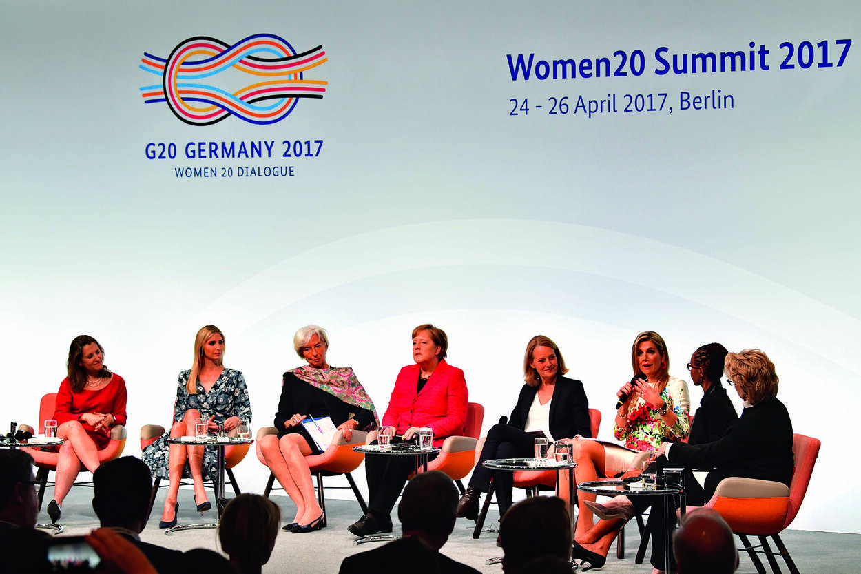 Op uitnodiging van bondskanselier Angela Merkel nam Hare Majesteit Koningin Máxima op 25 april in Berlijn deel aan een paneldiscussie over de economische positie van vrouwen en over vrouwelijk ondernemerschap. Tot de andere deelnemers behoorden Christine Lagarde, directeur van het Internationaal Monetair Fonds, en Ivanka Trump, dochter en adviseur van de Amerikaanse president Donald Trump.