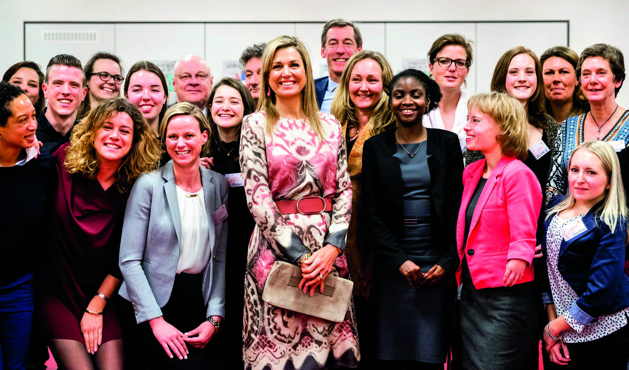 Koningin Máxima nam deel aan een rondetafelgesprek over de samenwerking tussen Emma at Work en bedrijven waar de jongeren werkzaam zijn. Werknemers van deze bedrijven helpen de jongeren bij hun loopbaanontwikkeling. Het Oranje Fonds steunt Emma at Work.
