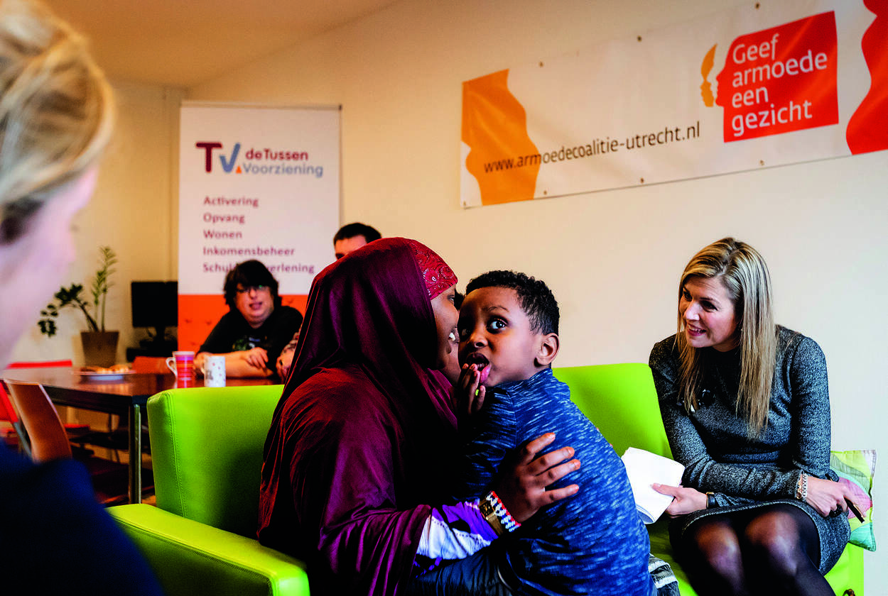 Vervolgens ging de Koningin in gesprek met de Armoedecoalitie Utrecht. Dit is een samenwerking van een groot aantal maatschappelijke organisaties met als doel armoede in Utrecht te bestrijden en sociale uitsluiting tegen te gaan. Koningin Máxima sprak ook met voormalig daklozen die nu werken als ervaringsdeskundigen bij de coalitie. Ze vertelden over wat ze met hulp van de Armoedecoalitie hadden bereikt en over hun toekomstplannen.