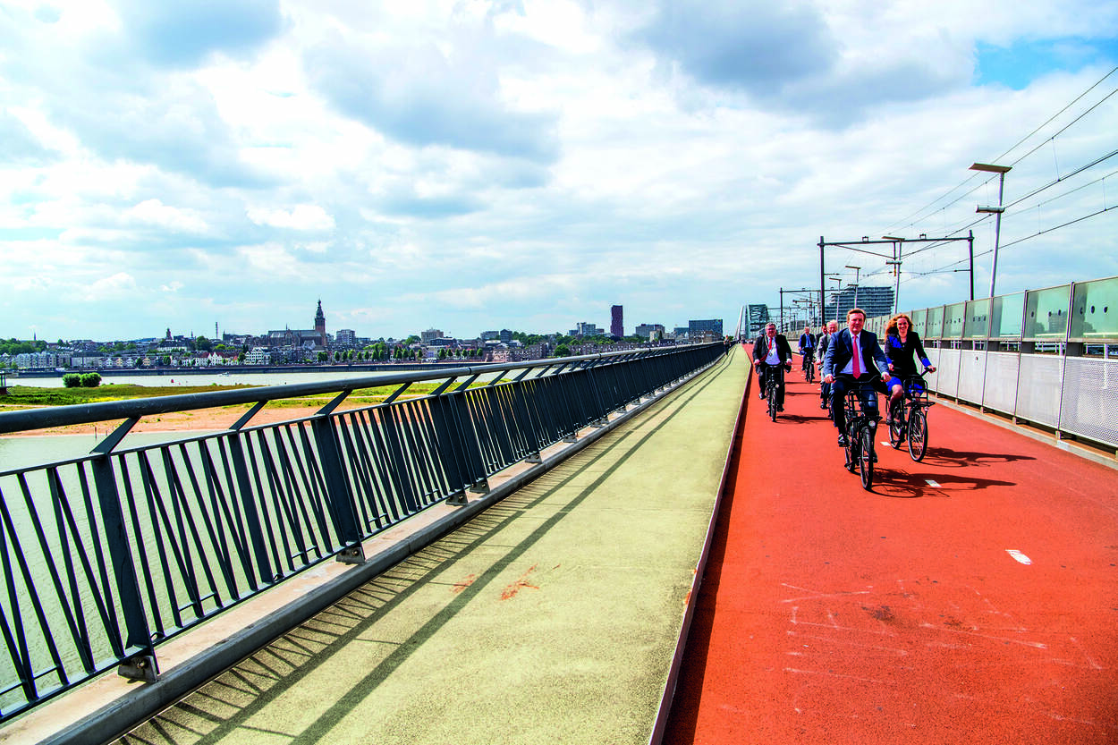 In juni organiseerden Arnhem en Nijmegen samen met de European Cyclists’ Federation en de provincie Gelderland een groot internationaal congres over de groeiende betekenis van de fiets. Circa 1.500 professionals ontmoetten elkaar om de laatste fietsinnovaties te bespreken en meer te leren over hoe steden en regio’s fietsvriendelijk ingericht kunnen worden. Zijne Majesteit Koning WillemAlexander opende Velo-city 2017 op 13 juni. Hij probeerde het RijnWaalpad uit, een snelfietspad van 17 kilometer tussen Nijmegen en Arnhem.