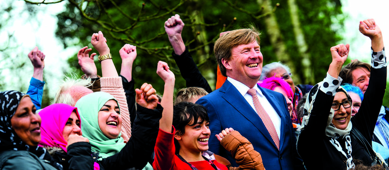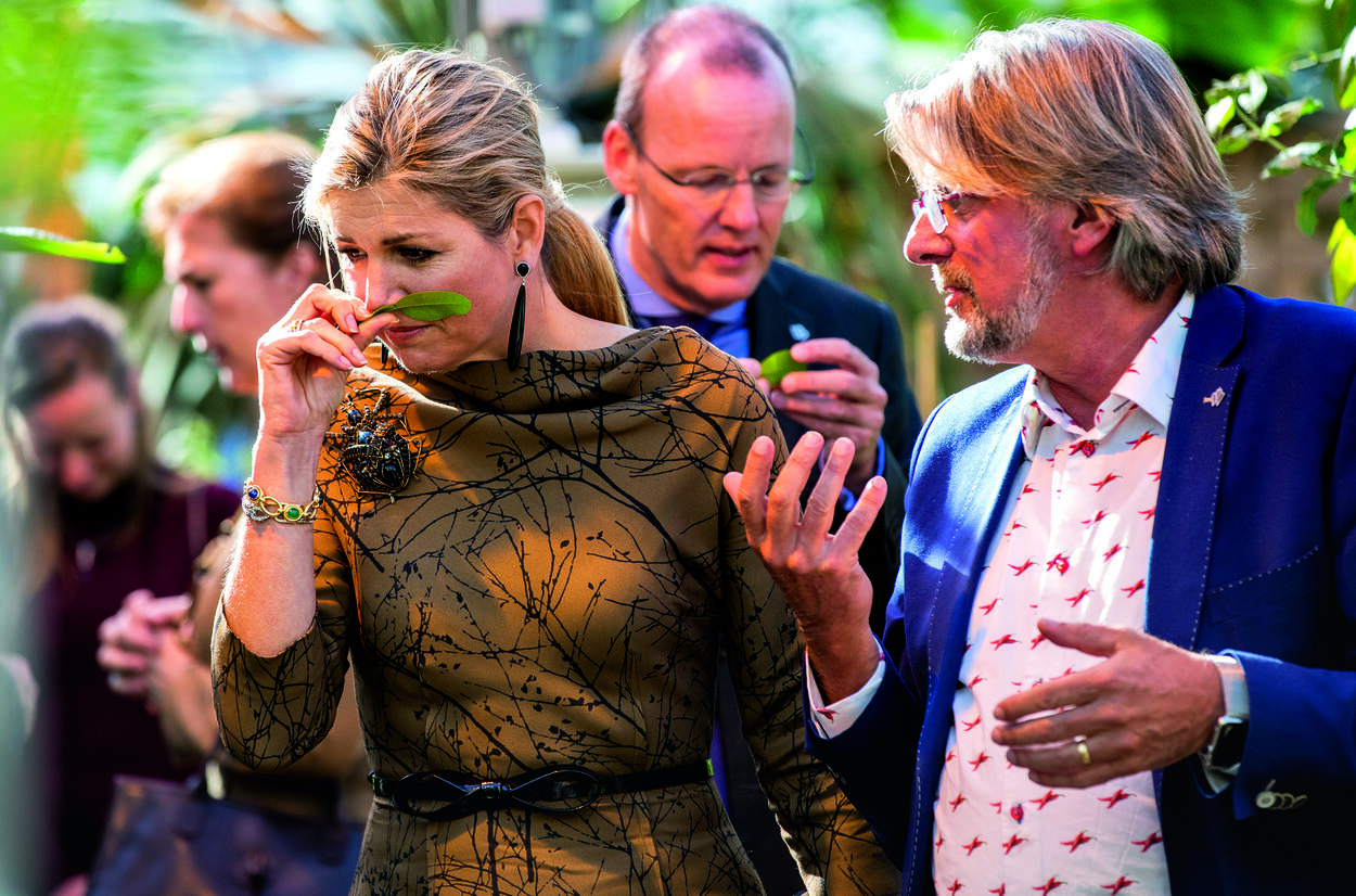 Vrijwilligster Elleke Thomassen wijdde zich samen met de Koningin aan het verpotten van geraniums en was blij met de extra handen. ”Het is leuk om te zien hoe het Koningspaar zich uitslooft.” In opperbeste stemming speculeerden sommige aanwezigen op een passende krantenkop. Misschien ‘Máxima zet de bloemetjes buiten?’. De Koningin kon er hartelijk om lachen. De Koning was ondertussen samen met andere vrijwilligers in de weer met het verplaatsen van betonblokken voor de fundering van een kas in de tuin. Al zwoegend lieten zij zich zelfs niet weerhouden door een lekke band van de kruiwagen.