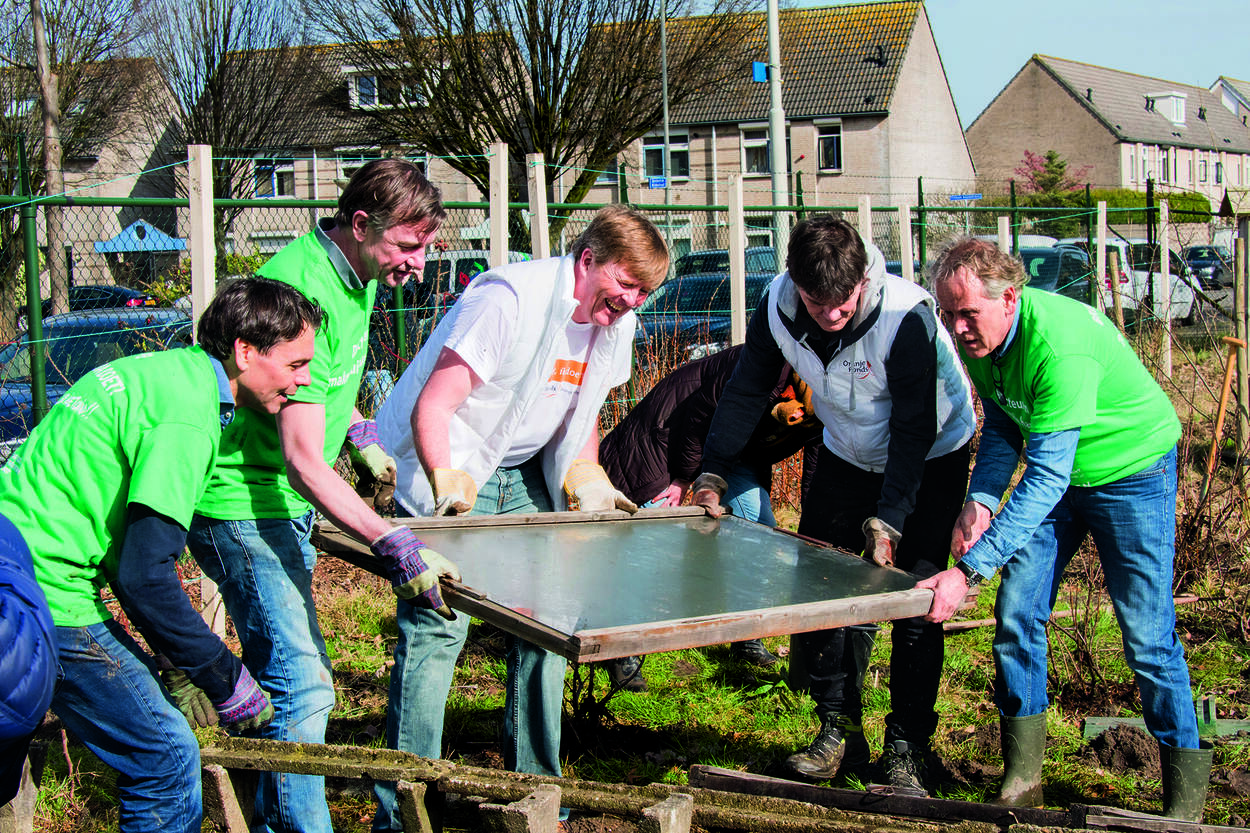 NLdoet is de grootste vrijwilligersactie van Nederland. Elke jaar melden duizenden maatschappelijke organisaties een klus aan bij het Oranje Fonds: vaak werk dat is blijven liggen en dat het beste samen met anderen aangepakt kan worden. Vervolgens kunnen groepjes collega’s, vrienden, buurtbewoners of teamgenoten een leuk karwei uitkiezen dat ze samen willen klaren. Aan de editie 2017 van NLdoet deden 350.000 vrijwilligers mee. Onder hen waren ook Zijne Majesteit Koning Willem-Alexander en Hare Majesteit Koningin Máxima. Zij klusten op 10 maart in Buurttuin Breda, in de wijk Hoge Vucht. Daar hielpen ze bij het opknappen van de tuin na het winterseizoen en met schoonmaak- en schilderwerk. De tuin wordt beheerd door omwonenden en is erg geliefd bij de bewoners van het naastgelegen verzorgingshuis en de kinderen van de kinderopvang in de wijk.