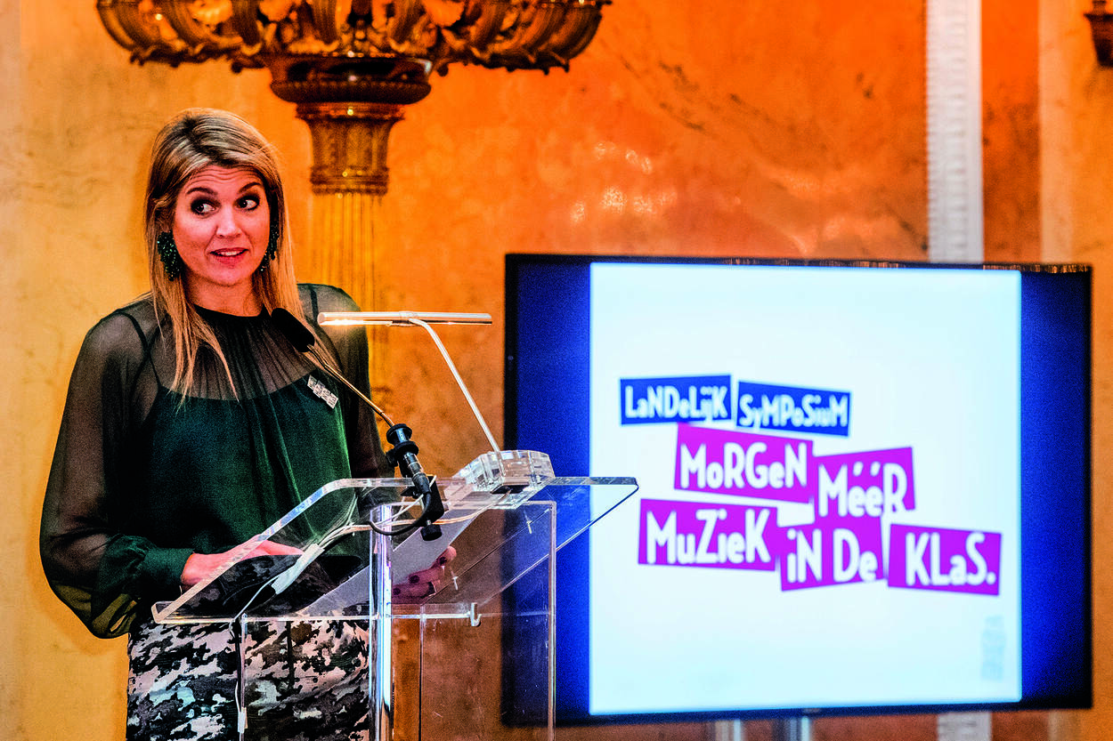 Muziekles voor alle kinderen op de basisschool, niet zo nu en dan een keertje, maar structureel. Dat is het doel van Meer Muziek in de Klas, waarin het onderwijsveld, de overheid, de publieke omroep, bedrijven en fondsen samenwerken. Hare Majesteit Koningin Máxima is erevoorzitter van het Platform Ambassadeurs Meer Muziek in de Klas. Zij ontving op 22 maart op Paleis Noordeinde tweehonderd leerkrachten, schoolleiders en bestuurders uit het hele land voor een symposium gewijd aan de vraag hoe muziekonderwijs op de basisschool geïntroduceerd en verankerd kan worden.