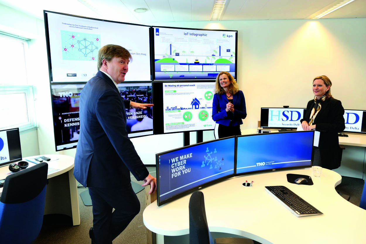 Annemarie Zielstra van TNO praatte de Koning bij over de ontwikkeling van een nationaal ‘testbed’ dat ons weerbaarder moet maken tegen hackers en cybercriminelen. Met deze innovatie kunnen digitale voorzieningen worden getest en kunnen zwakke plekken tijdig worden opgespoord en verholpen. Nederland loopt hiermee voorop in Europa. Annemarie Zielstra: “Het is essentieel dat we onze kwetsbaarheden beter leren kennen en investeren in applicaties die ons beschermen. Daarin slagen we alleen als overheden, bedrijven en kennisinstellingen nauw samenwerken.”