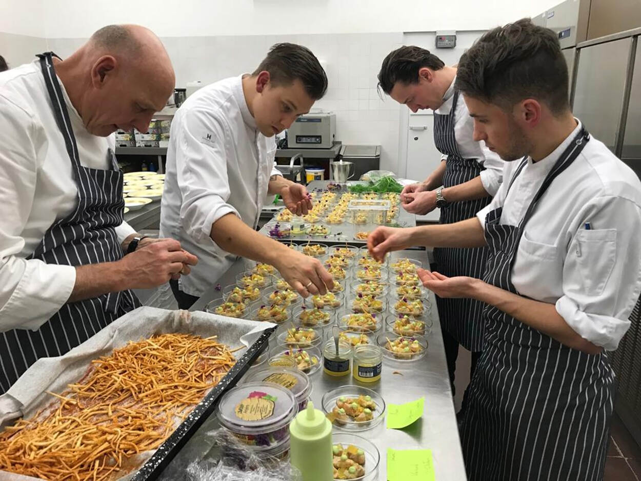 Niet al het werk dat komt kijken bij de organisatie, voorbereiding en uitvoering van een evenement is even zichtbaar. Het werk van de keukenmedewerkers is hier een voorbeeld van. De koks en de keukenassistenten zijn vrijwel dagelijks bezig met het voorbereiden van lunches en maaltijden voor de vele gasten die op Paleis Noordeinde en de andere paleizen worden ontvangen. In de grote keuken van Paleis Noordeinde, gesitueerd op de zolderverdieping, kunnen maaltijden worden bereid voor ongeveer 150 personen.