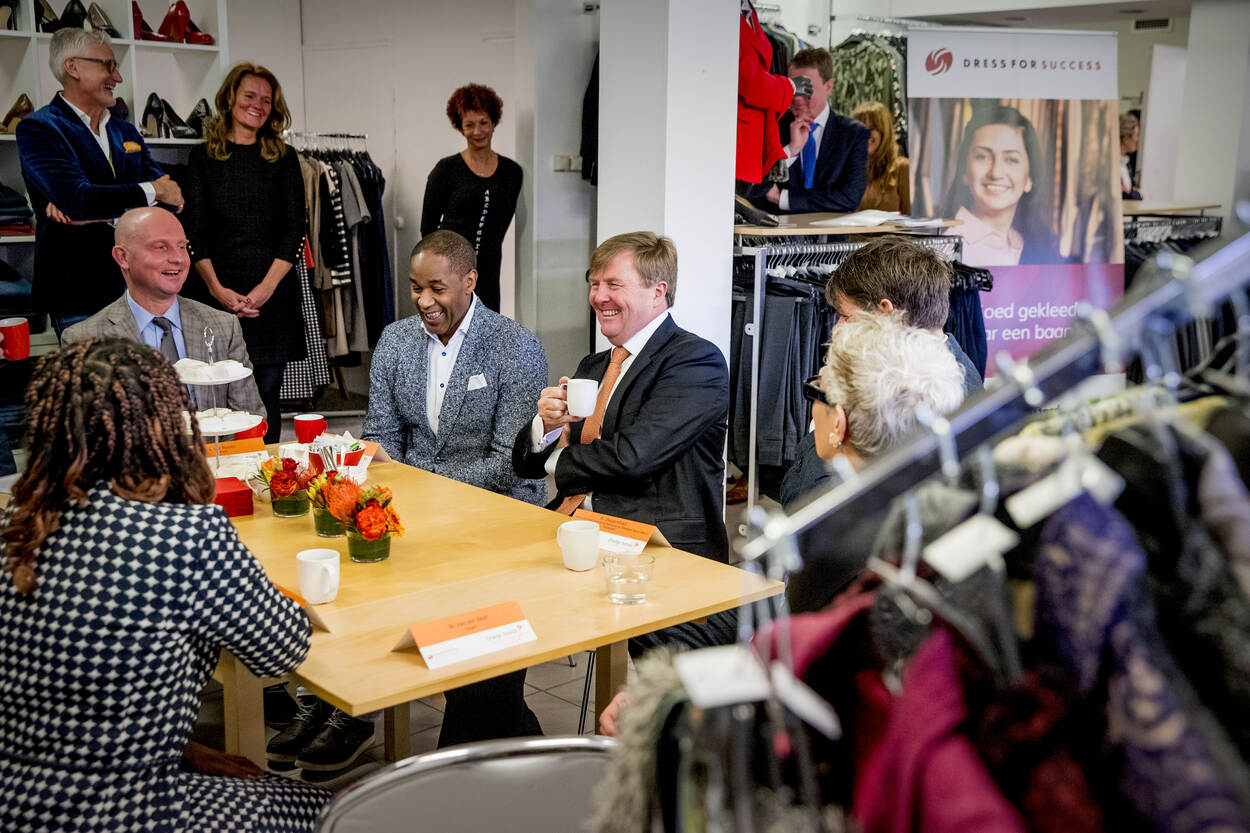 Zijne Majesteit Koning Willem-Alexander ging op 16 januari op werkbezoek bij Dress for Success om te praten met initiatiefnemers, vrijwilligers en klanten. Hij hoorde dat de klantenkring in bijna tien jaar tijd is vertienvoudigd tot 1.600 mensen en dat Dress for Success inmiddels in tien gemeenten actief is. De Koning ontmoette onder anderen Danny Kenton, die vanuit een uitkering een baan vond bij een modebedrijf: “Ik werd vaak afgewezen. Toen hoorde ik over Dress for Success. Ik stond verbaasd over de hulp die ik kreeg en de zorgvuldigheid waarmee zij mij hebben gekleed.” Danny is niet de enige die mede dankzij Dress for Success aan het werk is gekomen: bijna zestig procent van de klanten slaagde erin na advies een baan of opdracht binnen te halen. Directeur Corina Koekenbier verklaart het succes als volgt: “We geven mensen kleding en daarnaast zelfvertrouwen”