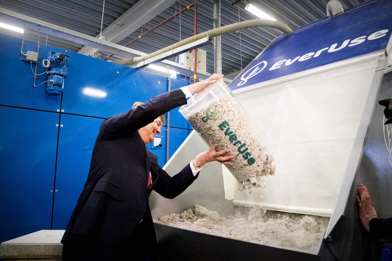 Nederlanders gooien jaarlijks hun eigen gewicht aan papier weg; zo’n zeventig kilo per persoon. De papier- en kartonindustrie produceert eveneens veel afval, dat ‘op de snijtafel’ achterblijft. Dit laatste (inktloze) restmateriaal kan een fantastische nieuwe bestemming krijgen als geluidswering in woningen en bedrijven. In een innovatieproces dat vele jaren in beslag nam, lukte het uiteindelijk om uit afvalpapier sterke en veerkrachtige isolatiematten te maken die gemakkelijk in de bouw kunnen worden gebruikt. De eerste circulaire isolatiefabriek in Europa die deze matten produceert, heet EverUse en staat in Sneek. Zijne Majesteit Koning Willem-Alexander verrichtte de opening op 23 januari.