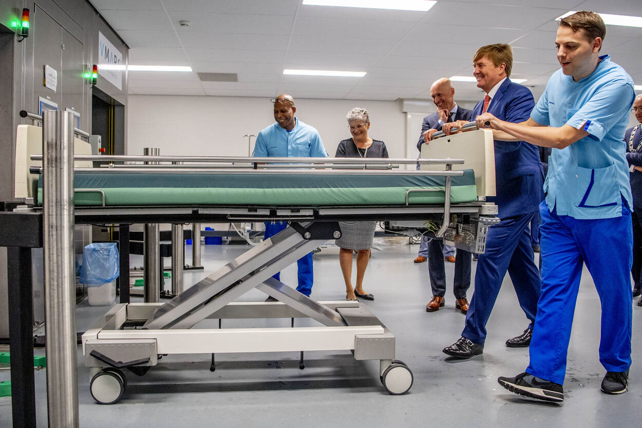 De Koning kreeg een uitgebreide rondleiding en keek ook achter de schermen, bijvoorbeeld bij de beddenwasstraat. Hier reinigen precisierobots alle onderdelen van gebruikte bedden en matrassen met heet water dat onder hoge druk staat. Binnen zes minuten is het complete bed schoon, droog en gereed voor een volgende patiënt.