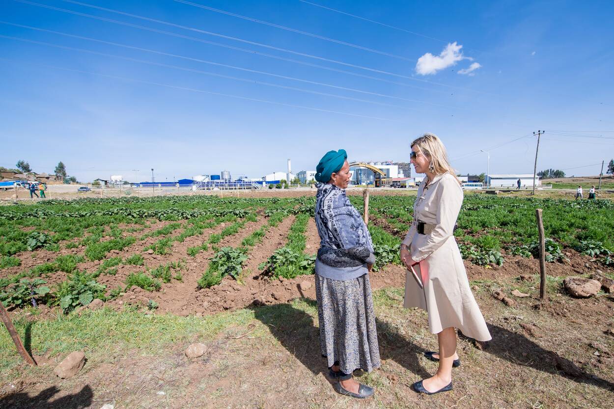 De Koningin sprak met vertegenwoordigers van de overheid en de bankensector en bracht ook een aantal veldbezoeken, onder meer aan Debre Birhan. Hier ontmoette zij boeren die gerst leveren aan bierbrouwerij Habesha. De brouwerij geeft hun voorfinanciering in de vorm van zaaigoed, kunstmest en landbouwadviezen. De boeren betalen dit terug met een deel van de oogst. Habesha is deels eigendom van het Nederlandse Swinkels, waarvan de Koningin op 28 maart in Lieshout nog het driehonderdjarig bestaan meevierde. Stijn Swinkels: “Wij helpen de boeren om gerst te telen voor de brouwerij. We zorgen dat ze betere zaden hebben en met de opbrengst voorzien ze een deel van onze brouwerij van gerst.” Van de boeren hoorde de Koningin dat zij met het geleverde zaad dubbel zoveel oogst binnen kunnen halen.
