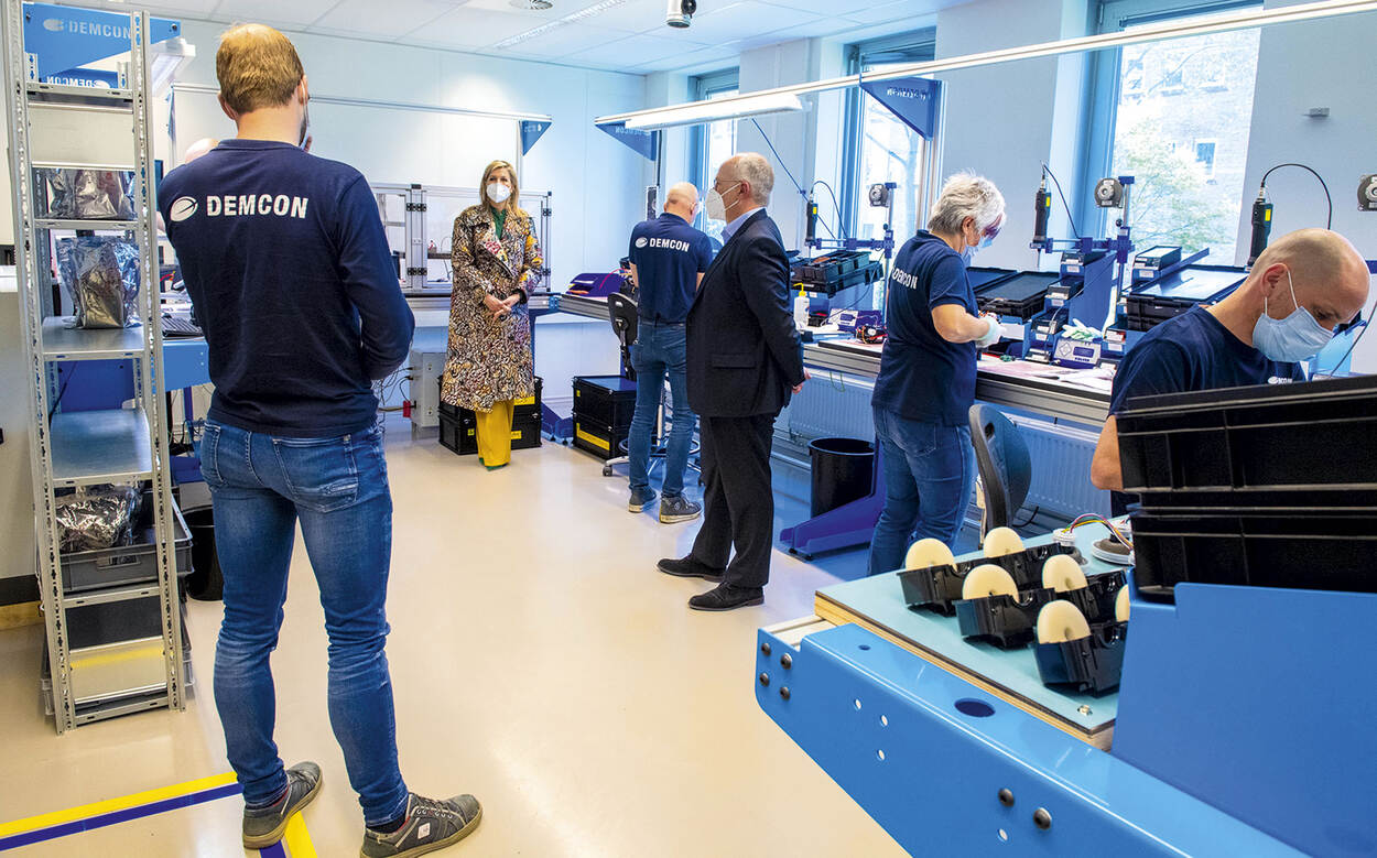 Technologiebedrijf Demcon in Enschede maakte al losse beademingsmodules voor klanten in Europa, de Verenigde Staten en Japan. Maar een compleet beademingssysteem dat geschikt is voor patiënten op de intensive care, dat leverde het bedrijf nog niet. De coronacrisis en de daaruit voortkomende acute behoefte aan extra beademingsapparatuur in de Nederlandse ziekenhuizen, inspireerden het bedrijf tot een unieke prestatie. In overleg met het ministerie van Volksgezondheid, Welzijn en Sport en een aantal ziekenhuizen ontwikkelde, produceerde en testte Demcon in sneltreinvaart een eigen beademingssysteem: DemcAir. Een ‘mission impossible’, volgens CEO Dennis Schipper, maar wel een missie met resultaat. Op 16 april kwam Hare Majesteit Koningin Máxima naar Enschede om van medewerkers en toeleveranciers te horen hoe het proces was verlopen. Dennis Schipper: “Ik vind het ongelofelijk leuk dat onze Koningin hier is. Het is een erkenning voor onze mensen die dag en nacht aan het werk zijn geweest om dit voor elkaar te krijgen. Op 20 maart hebben we een voorstel naar het ministerie gestuurd. Op 22 maart kwam de toestemming en drie weken later hebben we een eigen beademingsmachine. Een traject dat normaliter een jaar duurt is in drie weken afgelegd.”