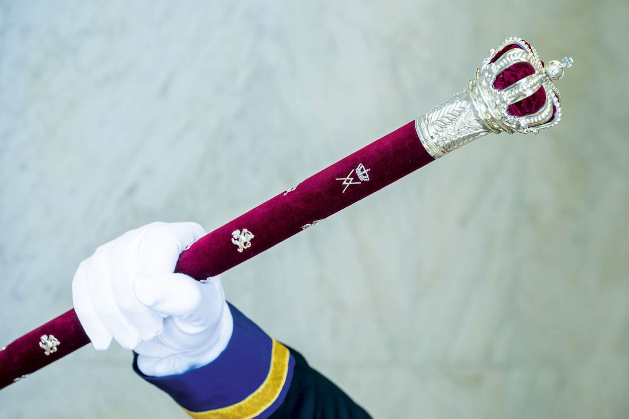 Een bijzonder moment tijdens de ontvangsten is de entree van de leden van de Koninklijke familie. De ceremoniemeester loopt voor hen uit met in zijn rechterhand de ceremoniemeesterstaf. Deze in 1842 door P. de Meyer in Den Haag gemaakte staf was oorspronkelijk in gebruik als maarschalksstaf. De kern is van hout, omhuld met fluweel en de applicaties zijn van zilver. Sinds 1980 wordt hij door de ceremoniemeester gebruikt tijdens de Nieuwjaarsontvangsten en bij staatsbanketten. De ceremoniemeester slaat drie keer met de staf op de grond en roept met l uide stem: ‘de Koning en Koningin!’ Vervolgens houdt de Koning zijn toespraak.