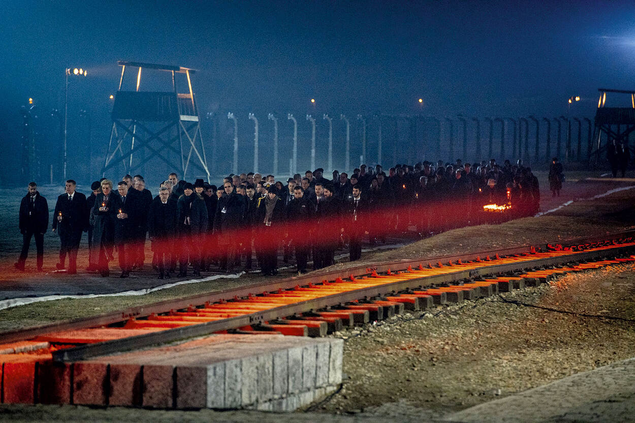 President Duda van Polen was een van de sprekers: “Wij zijn hier samengekomen als vertegenwoordigers van 61 landen van over de hele wereld om samen te herdenken. We staan voor de poort naar het kamp dat zoveel slachtoffers heeft geëist en dat het symbool is geworden van de Shoah. Wij betonen respect aan alle zes miljoen Joden die zijn vermoord in dit kamp en andere kampen, in de getto’s en op andere plaatsen van marteling.”