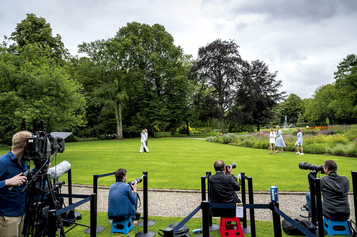 Nadat bij de winterfotosessie in Lech vertegenwoordigers van de pers nog massaal op de piste aanwezig waren en tijdens het staatsbezoek aan Indonesië zo’n dertig Nederlandse journalisten meereisden, moest ook voor de media in maart noodgedwongen het roer om. Vanwege de coronamaatregelen konden verslaggevers en beeldmakers bij de Koninklijke werkbezoeken nog maar mondjesmaat aanwezig zijn. Om bij de zomerfotosessie van het Koninklijk gezin in de tuin van Paleis Huis ten Bosch toch nog zoveel mogelijk media te bedienen, bedacht de Rijksvoorlichtingsdienst iets nieuws: elke cameraman of fotograaf kreeg een eigen persvakje op anderhalve meter van collega’s. Door loting werden de eenpersoonsposities ter plekke verdeeld. Het aansluitende persgesprek vond ook niet in de gebruikelijke halve cirkel van opeengepakte cameraploegen plaats, maar met één poolcamera en verslaggevers die één voor één naar voren stapten om hun vragen aan het Koninklijk Paar te stellen. “Bizar dit, maar ik heb nog nooit zo rustig kunnen werken,” aldus één van de fotografen.
