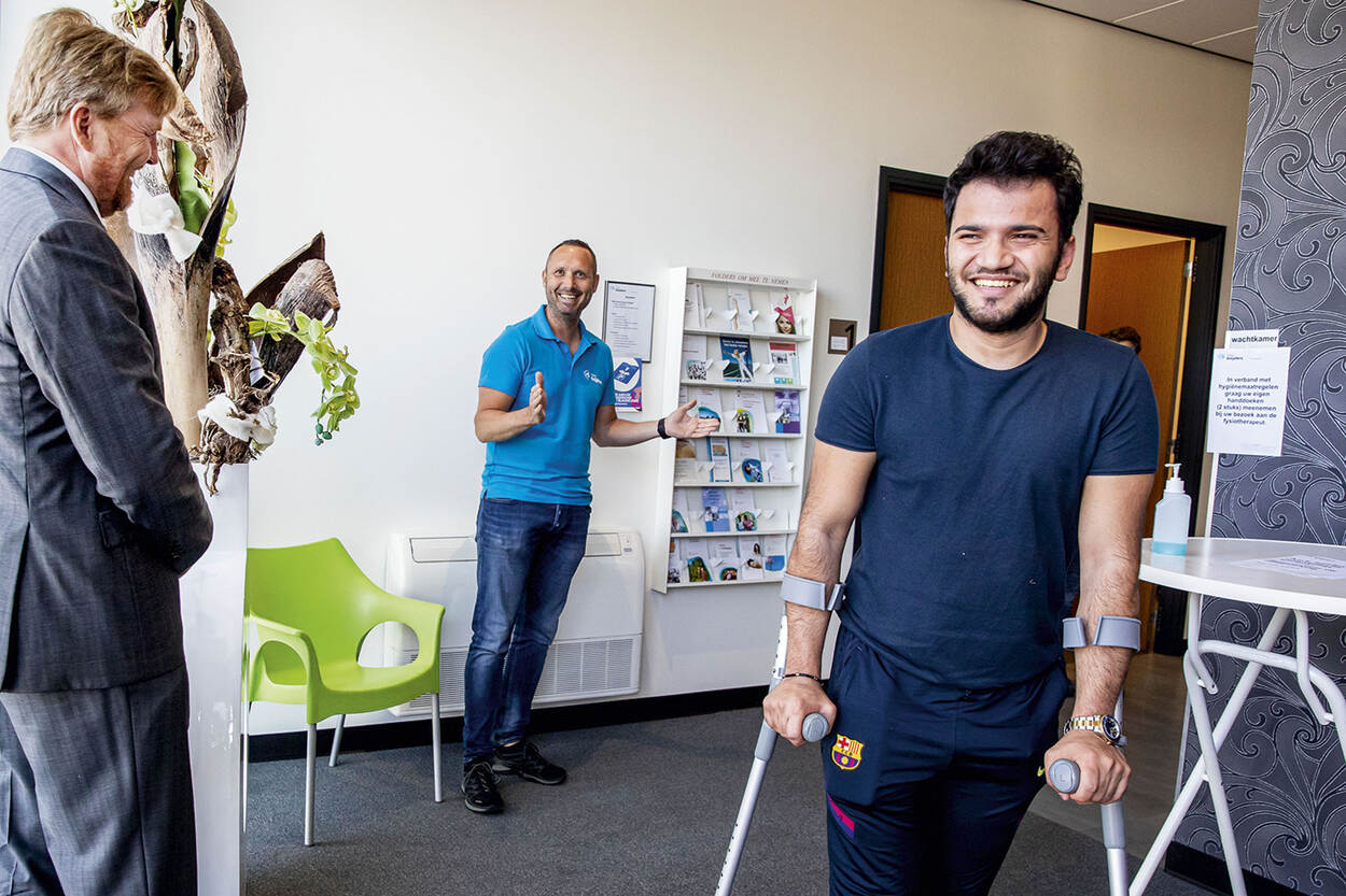 Coronapatiënten die flink ziek zijn geweest, hebben vaak langere tijd nodig om weer op krachten te komen. Vooral bij mensen die op de IC hebben gelegen kan het lang duren voordat ze weer de oude zijn. Hun spieren zijn verzwakt, ze zijn vaak ondervoed, hun geheugen kan haperen en ook psychisch hebben ze een flinke klap gehad. Om weer zo goed mogelijk te herstellen is revalidatie cruciaal. Revalidatiecentrum Adelante in Hoensbroek zette al in maart een afdeling op voor coronapatiënten die specialistische revalidatiezorg nodig hebben. Zijne Majesteit Koning Willem-Alexander bracht op 19 mei een werkbezoek aan het centrum. Hij sprak met onder anderen Meta van der Woude. Zij behandelde als intensivist coronapatiënten, werd zelf door het virus geveld en belandde op de IC. ‘Hoe is dat als arts als je zelf weet wat er met je lichaam gebeurt?’, wilde de Koning weten. “Vreselijk”, was het antwoord. “Ik wist gewoon te veel. Ik hoorde nare verhalen op het journaal over artsen die doodgingen en ik dacht: ik ben de volgende. Ik zie er nu misschien goed uit, maar ik kan niet ver lopen. Als ik thuis kook, moet ik aan huisgenoten vragen om pannen af te gieten en blikjes te openen. Maar toch wil ik heel graag weer terugkeren in mijn vak omdat ik nu nog beter met IC-patiënten kan meeleven en kan invoelen wat ze ondergaan. Ik hoop dat ik dat ook psychisch aankan.”
