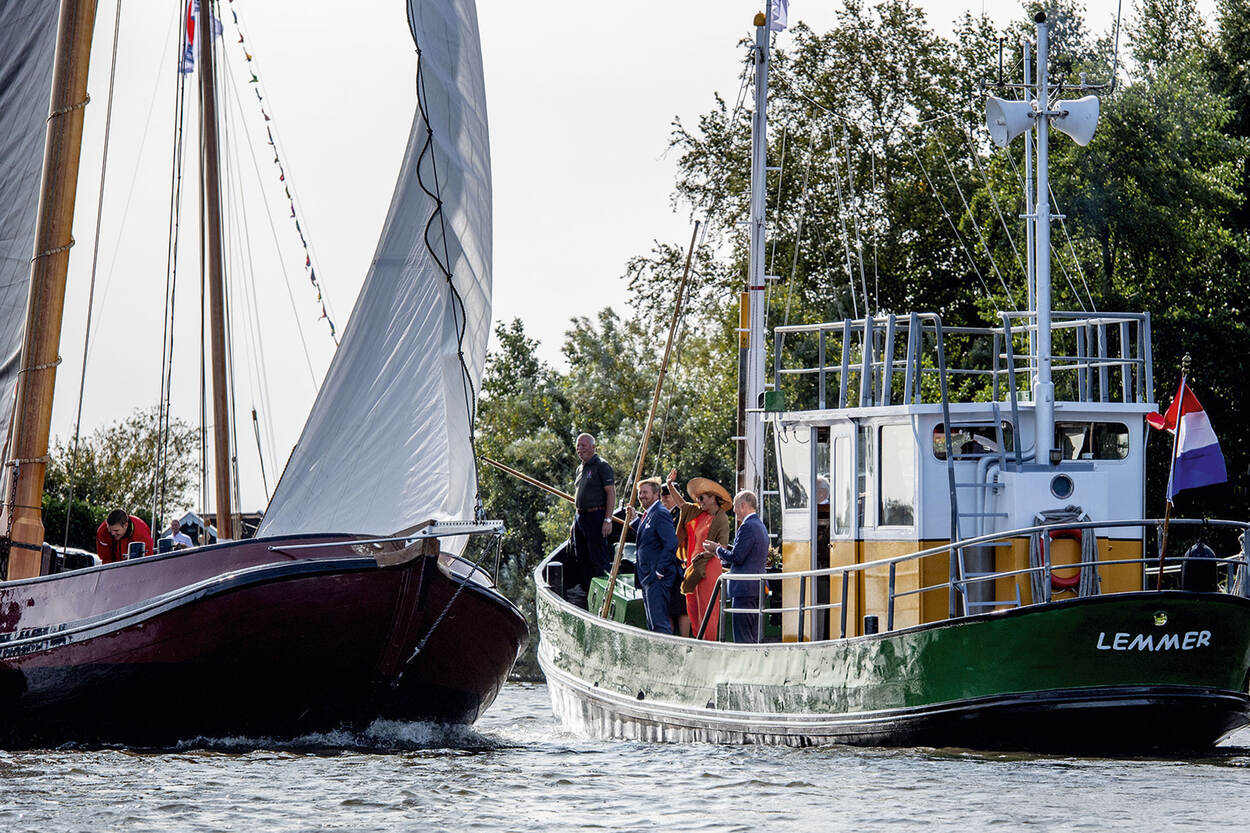 Een bezoek aan Zuidoost-Fryslân kan natuurlijk niet zonder aandacht voor skûtsjesilen, het wedstrijdzeilen met historische vrachtzeilschepen. Sinds 75 jaar organiseert de Sintrale Kommisje Skûtsjesilen wedstrijden op de Friese wateren. Door de coronapandemie kon in 2020 (voor het eerst in het 75-jarig bestaan van de vereniging) het SKS-kampioenschap niet doorgaan. De Koning en Koningin kregen als knipoog ieder een mûlekapke (mondkapje) met het woord skûtsjesilen. Bij Zeilschool De Veenhoop gingen zij aan boord van startschip “De Zevenwolden” en maakten zij een vaartocht langs de veertien skûtsjes van de SKS die aan wal lagen.