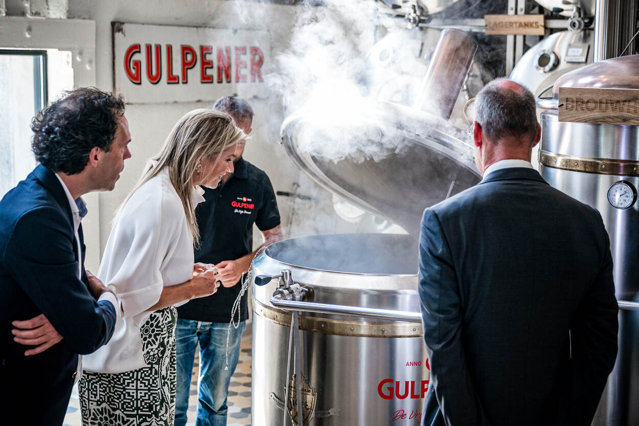 Gulpener Bierbrouwerij is een familiebedrijf dat bijna twee eeuwen bestaat. De brouwerij kreeg in 2020 de Willem I Plaquette voor duurzaam ondernemerschap. Het bedrijf wil het lekkerste bier brouwen met lokale grondstoffen en hecht daarom sterk aan een goede band met de tel ers in de regio. Alle grondstoffen moeten binnen een straal van veertig kilometer rond het bedrijf worden verworven. De Koningin kreeg een uitgebreide rondleiding door de brouwerij en kon onderweg de door haarzelf geplukte hop in de brouwketel deponeren. “Over zes weken kunnen we proeven of het geworden is wat we hoopten”, zei directeur Jan-Paul Rutten. Hij vertelde de Koningin over de ambitie van het bedrijf om in 2030 alle bieren te kunnen brouwen zonder het gebruik van fossiele brandstoffen. Jan-Pauls zus Maartje Rutten is verantwoordelijk voor de communicatie en marketing: “Wij hebben een visie voor de lange termijn en denken niet in jaren, maar in generaties.”