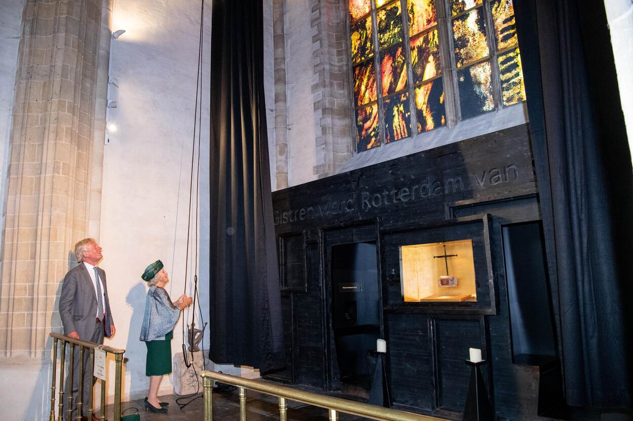 Ter herinnering aan dit verwoestende oorlogsgeweld werd in 2021 in de Laurenskerk een bijzonder herdenkingsraam geplaatst met de naam ‘Vrede & Verzoening’. Het raam is ontworpen door kunstenaar Janneke Viegers en gemaakt door glasatelier Hagemeijer uit Tilburg. Hare Koninklijke Hoogheid Prinses Beatrix onthulde het raam op 10 september. “De Laurenskerk is het enige middeleeuwse gebouw in Rotterdam dat hersteld is na de Tweede Wereldoorlog”, aldus Frank Migchielsen, directeur van de stichting Laurenskerk. “In het raam wordt verwezen naar de steden Rotterdam, Coventry en Dresden. Het is een indrukwekkend kunstwerk geworden. Het mooie is niet alleen de verbeelding, maar ook de wijze waarop het gemaakt is. Om het schilderij van Janneke Viegers te vertalen in glas, moest door de glazeniers Stef Hagemeier en Jan-Hein van Stiphout een nieuwe oplossing worden bedacht. Het is geen traditioneel glas-in-loodraam geworden, maar een gebrandschilderd raam, waarin kleuren in elkaar overlopen. Daarmee is het uniek.”