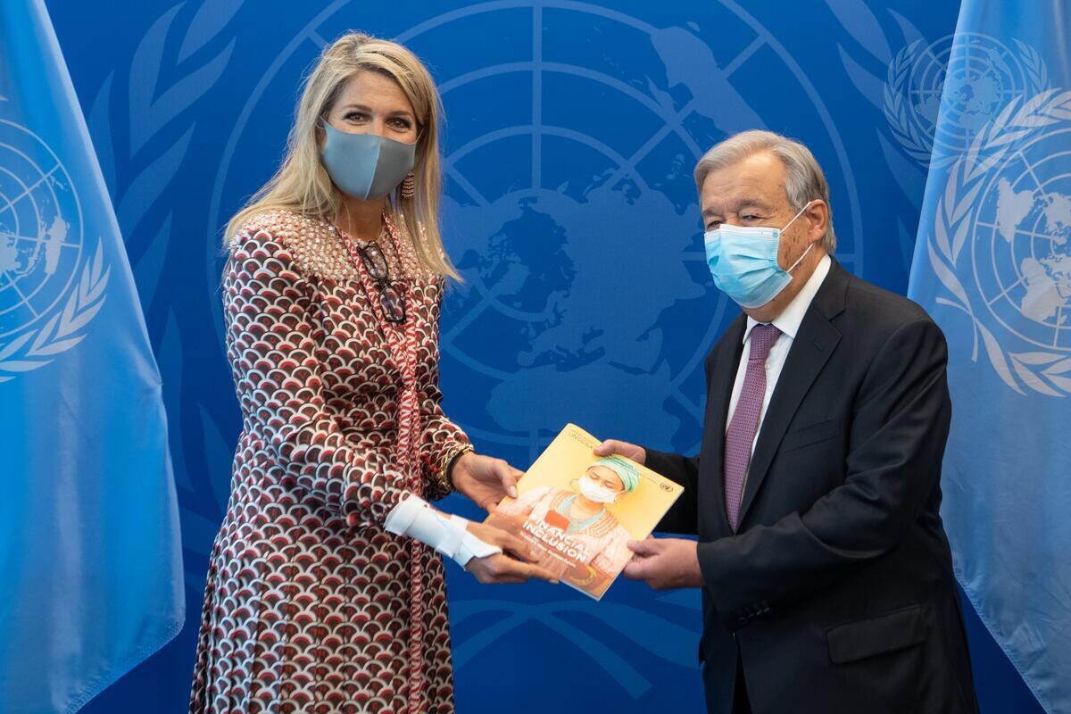Veilig geld kunnen ontvangen, kunnen betalen en sparen, een lening of een verzekering kunnen afsluiten: het zijn basisvoorwaarden voor ieder mens om een redelijk bestaan op te kunnen bouwen en overeind te blijven bij tegenslagen. Als speciale pleitbezorger van de secretaris-generaal van de Verenigde Naties voor inclusieve financiering voor ontwikkeling bezocht Hare Majesteit Koningin Máxima de Algemene Vergadering van de VN in New York van 21 tot en met 23 september. Zij bood secretaris-generaal António Guterres haar twaalfde jaarverslag aan met een overzicht van haar werkzaamheden en de resultaten daarvan.