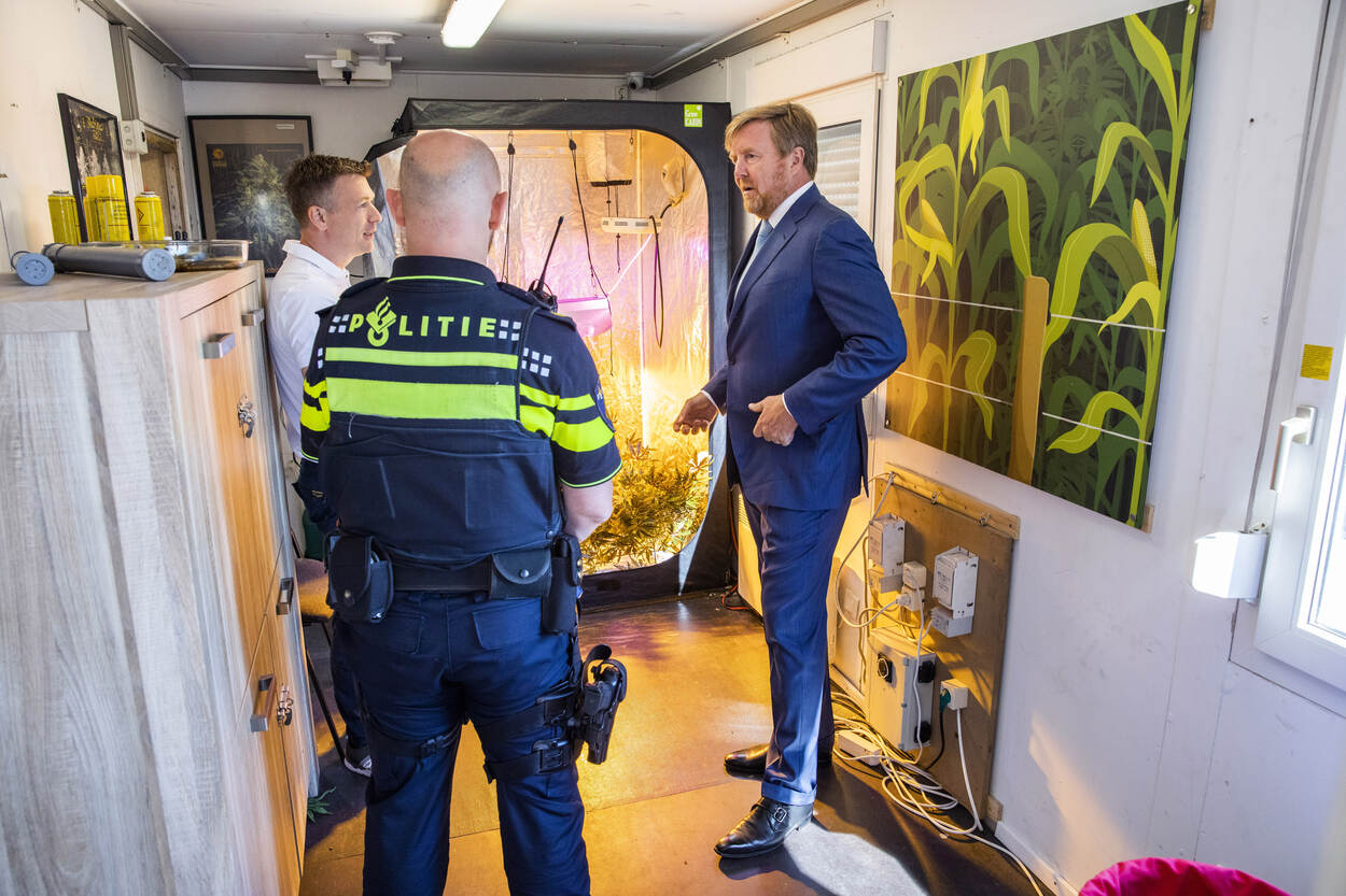 Loodsen en schuren op boerenerven zijn een aantrekkelijke plek voor de productie en opslag van hennep en synthetische drugs. Jaarlijks gaan hier vele miljarden in om. Eén op de zes boeren is wel eens benaderd door schimmige figuren die belangstelling toonden voor hun opstal. Het Openbaar Ministerie Oost-Nederland en de gemeente Beuningen nodigden Zijne Majesteit Koning Willem-Alexander uit om deze problematiek beter te leren kennen. Op 20 april sprak de Koning op het melkveebedrijf van Herbert en Annelies Verploegen in Winssen met vertegenwoordigers van organisaties en overheden die samen trachten een dam op te werpen tegen drugscriminaliteit. “Wij zijn ooit benaderd door een man met een zonnebril op in een grote auto die vroeg of we ruimte over hadden”, vertelde Herbert Verploegen. Ron van Berkmortel is vertrouwenspersoon bij ZLTO en probeert agrarisch ondernemers bewust te maken van de risico’s: “Criminelen hebben het vooral gemunt op kwetsbare ondernemers die moeite hebben hun bedrijf rendabel te houden. Zij zijn vatbaar voor de verleiding.” Burgemeester Daphne Bergman van Beuningen schetste de uitdagingen waar zij voor staat: “In mijn uitgestrekte gemeente beschik ik over twee BOA’s. We werken samen met zes gemeenten om het ondermijningsprobleem aan te pakken.” Projectleider Veilig Buitengebied Kim van Doesem: “Boeren zijn niet de boeman. Wij willen naast hen gaan staan om samen weerbaarder te zijn.”