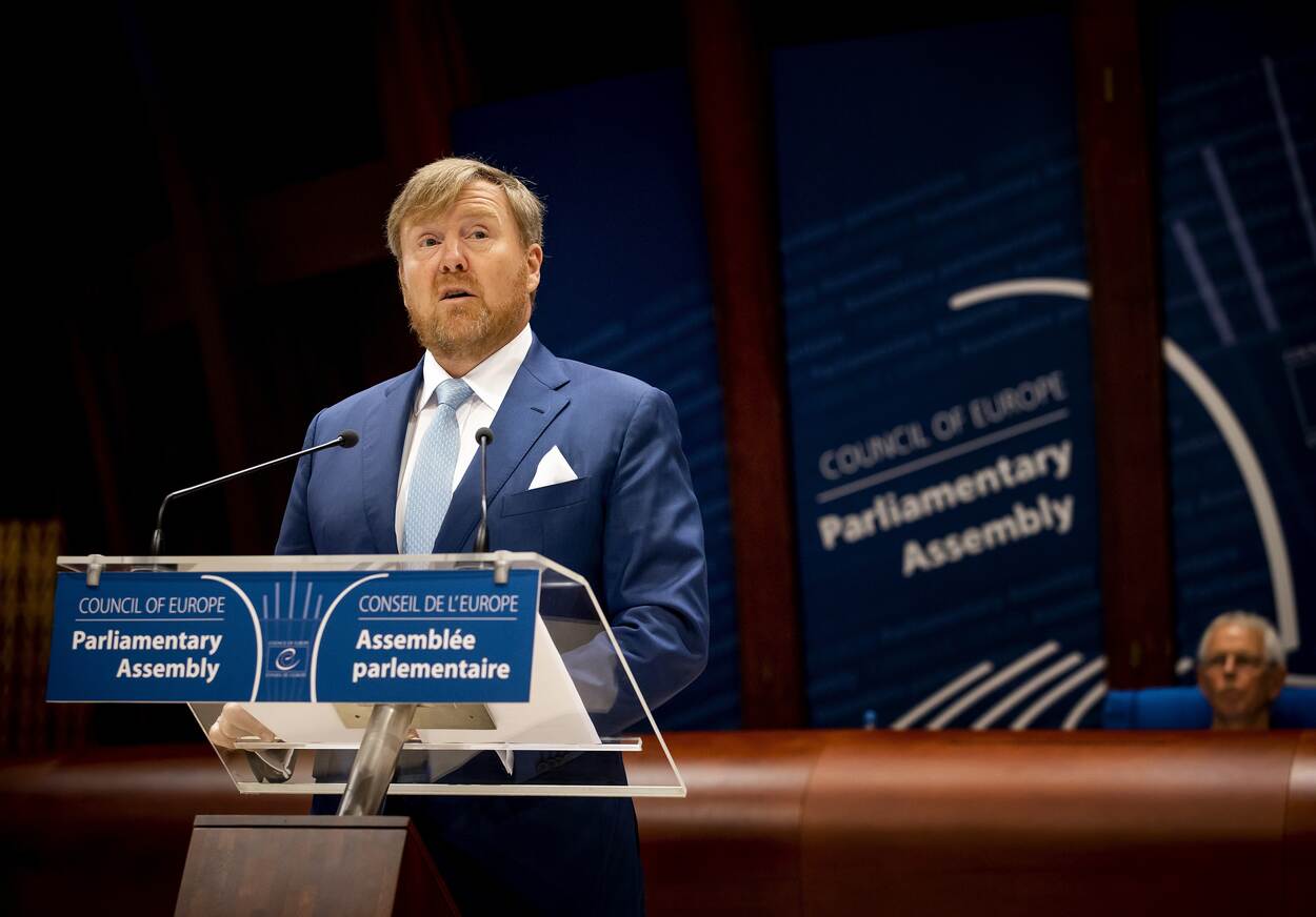 De Koning verwoordde de toegevoegde waarde van de Raad van Europa als volgt: “Het is een geweldige verworvenheid dat 46 kleine en grote landen zich uit eigen vrije wil hebben gebonden aan gezamenlijke afspraken. Bijna driekwart eeuw lang bewijst de Raad van Europa dat we geen slaaf hoeven te zijn van bitterheid en pijn uit het verleden. Dat er een alternatief is voor geweld en blinde machtsterreur. Dat het mogelijk is in vrede en vrijheid met elkaar te leven door altijd met elkaar in gesprek te blijven. Juist om deze reden ging er een schokgolf door Europa toen in februari dit jaar een van onze medelidstaten – het vrije, vreedzame, onafhankelijke Oekraïne – werd aangevallen. De Russische inval is een flagrante schending van alles waar wij als familie van Europese landen voor staan. Dit cynische geweld druist in tegen alle fundamentele waarden waarop de Raad van Europa is gebouwd. Het is bemoedigend dat uw Assemblee vanaf het eerste moment steun heeft uitgesproken voor Oekraïne. Europa is in woorden en daden verenigd in zijn verdediging van het recht van soevereine landen om hun eigen toekomst vorm te geven.”