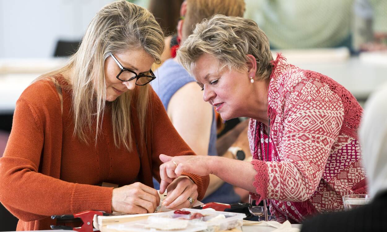 Op 30 juni ging de Koningin naar het TextielLab van het TextielMuseum om met ontwerpers en makers te praten over de techniek en het ambacht en samen met hen verder te werken aan de gordijnen.