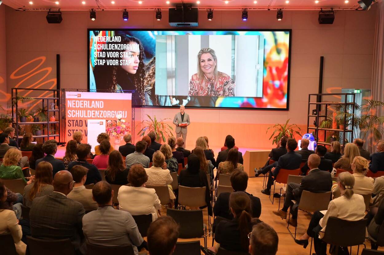 Het duurt gemiddeld vijf jaar voordat een huishouden met problematische schulden aanklopt voor hulp. Dan zijn er inmiddels veertien schuldeisers en bedraagt de gemiddelde schuld 43.000 euro, waarvan twee derde bestaat uit bijkomende kosten. In Nederland hebben 1,4 miljoen huishoudens problematische schulden en van hen zijn ruim 1,2 miljoen huishoudens niet bekend bij de formele schuldhulp. Om te voorkomen dat deze mensen aan hun lot worden overgelaten, hebben gemeenten, rijksoverheid, banken, energieleveranciers en verzekeraars de handen ineen geslagen. Binnen het samenwerkingsverband SchuldenlabNL werken ze ernaartoe om Nederland schuldenzorgvrij te maken. Hare Majesteit Koningin Máxima is erevoorzitter van SchuldenlabNL. Op 7 juni sprak zij online een bijeenkomst toe van wethouders en andere betrokkenen, waarbij ook minister Carola Schouten voor Armoedebeleid, Participatie en Pensioenen aanwezig was.