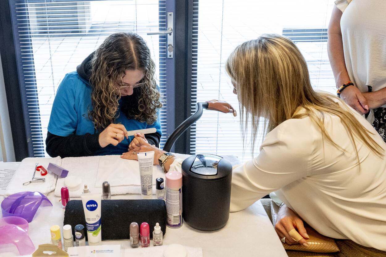 De leerlingen kunnen kiezen uit een aantal sectoren waarin zij zich willen ontwikkelen: Zorg & Facilitair, Dier & Groen, Horeca, Detailhandel & Logistiek en Techniek. De Koningin maakte een rondgang door de school en sprak onderweg met docenten en leerlingen. Maar in een praktijkschool kan het natuurlijk niet blijven bij praten alleen: in de nagelstudio gaf een van de leerlingen de Koningin een manicure.