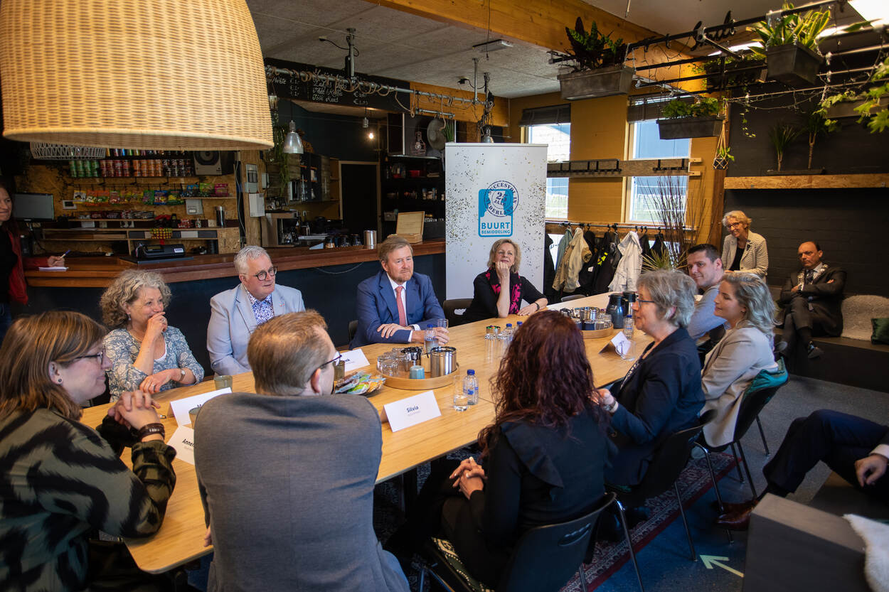De Koning en Koningin gingen tussen de barakken in gesprek met de vluchtelingen en zagen hoe divers de groep was. Ze ontmoetten onder anderen leraren, kappers, technisch installateurs, tandartsen, kinderen en studenten die in Kyiv medicijnen studeerden, soms afkomstig uit derde landen als Jemen en Syrië. “Mensen zijn dankbaar dat ze hier veilig mogen verblijven”, vertelde Koen Schaper, woonbegeleider bij het COA. “Veel van hen willen ook iets terugdoen als vrijwilliger”, voegde vrijwilligerscoördinator Harma Jansma toe. Arts Marije Hilhorst vertelde hoe met kunst en vliegwerk binnen een dag een huisartsenpost was ingericht: “We zien hier jonge moeders die bezorgd zijn over hun hoestende kind, maar ook ouderen met suikerziekte.” Voorzitter van de dorpsraad van Harskamp Linda Vellinga zei blij te zijn dat de gemeente de omwonenden vroeg bij de opvang had betrokken. Als leerkracht wilde ze ook een steentje bijdragen door de Oekraïense kinderen onderwijs te bieden in het dorp.