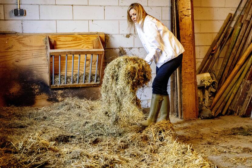 De Koningin pakte een riek en ging aan de slag met het uitmesten van de schapenhokken. De Koning greep liever de snoeischaar om de perenbomen onder handen te nemen. “Een echte work-out”, vond de Koningin het uitmestwerk. “En we waren vooral met vrouwen, viel me op.”