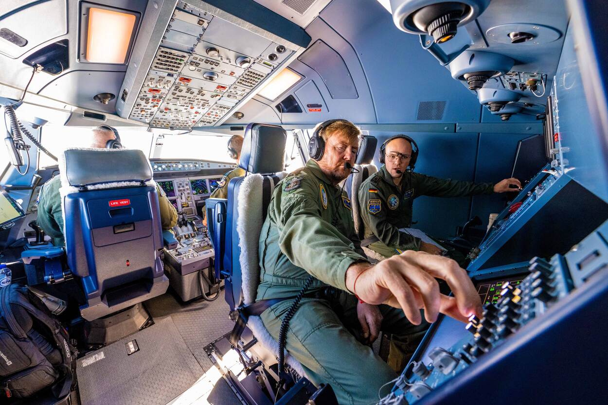 Vervolgens ging de Koning met de bemanning aan boord van een MRTT-vliegtuig voor een tankoefening ten noorden van de Waddeneilanden.