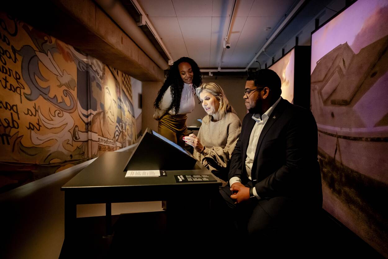 “Mensen met macht lieten hun sporen na in de archieven”, vertelde samensteller Dyonna Benett. “Mensen zonder macht moesten het hebben van mondelinge overlevering. Daarom besteden we ook aandacht aan anekdotes, herinneringen, rituelen en liederen die zijn verzameld.” Rondleider Zion Piggott vertelde de Koningin dat hij ook lessen gaf op school aan de hand van materiaal uit de tentoonstelling: “Ons onderwijs in Nederland is heel eurocentrisch ingericht. Maar hiermee voegen wij een belangrijk perspectief toe.” Alfrida Martis, initiatiefneemster van de Caribbean Ancestry Club, vertelde dat zij de tentoonstelling had bezocht met jongeren van de Caribische eilanden: “Zij hadden het gevoel: eindelijk wordt mijn verhaal ook verteld.”