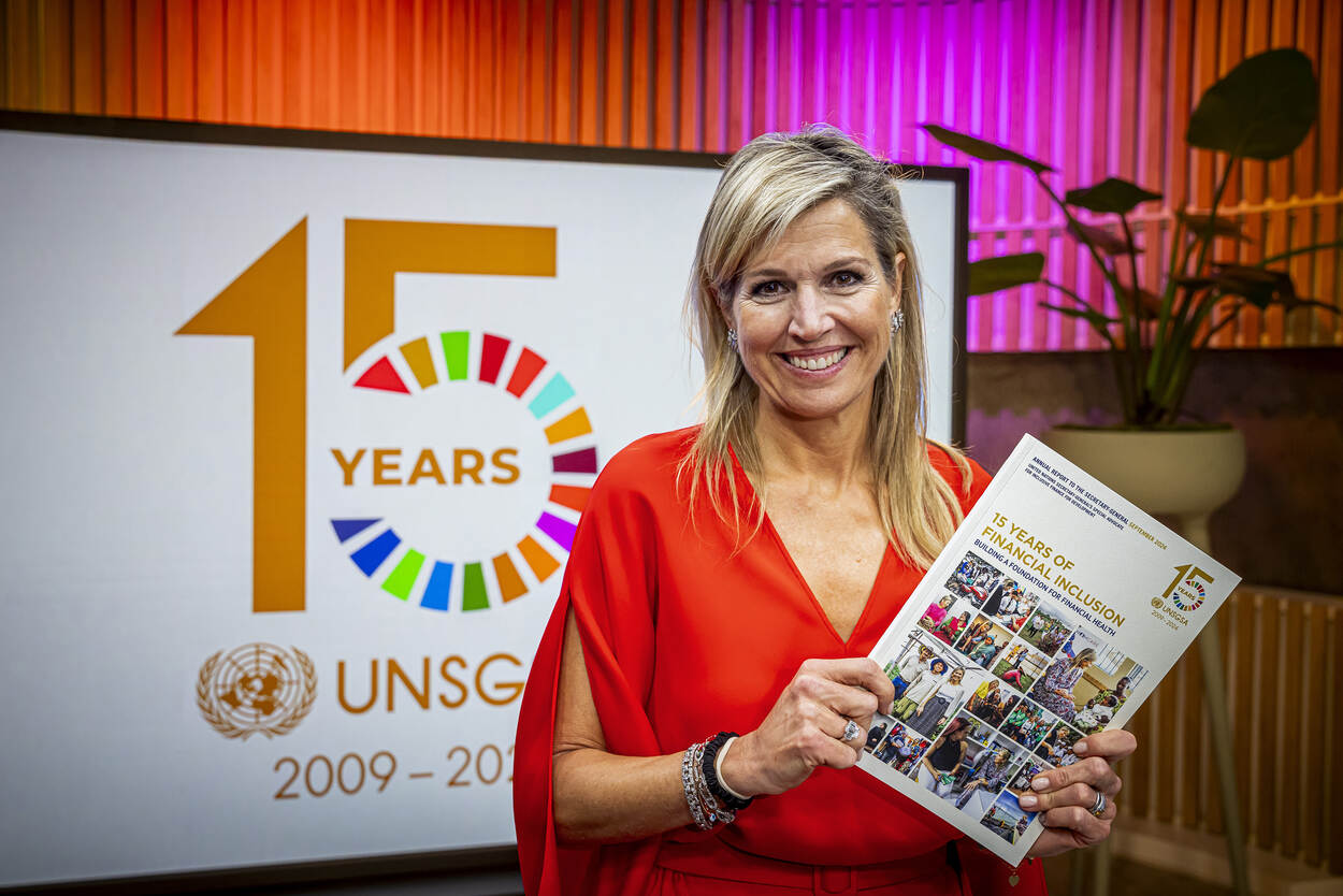 Koningin Máxima is in New York voor de 79e Algemene Vergadering van de Verenigde Naties (AVVN). Dit jaar is zij vijftien jaar speciale pleitbezorger van de VN secretaris-generaal voor inclusieve financiering voor ontwikkeling (UNSGSA). Samen met vele partners zet Koningin Máxima zich wereldwijd in voor een gezamenlijk doel: goede toegang tot en veilig en betaalbaar gebruik van financiële diensten, vooral voor de meest kwetsbare mensen. Er is een solide basis gelegd voor ontwikkeling, maar er is meer nodig. Op 25 september is Koningin Máxima bij de Verenigde Naties benoemd tot speciale pleitbezorger van de VN secretaris-generaal voor financiële gezondheid. In haar nieuwe functie gaat zij zich daarom richten op het ontwikkelen van financiële diensten die passen bij wat mensen nodig hebben en écht bijdragen aan financiële gezondheid.