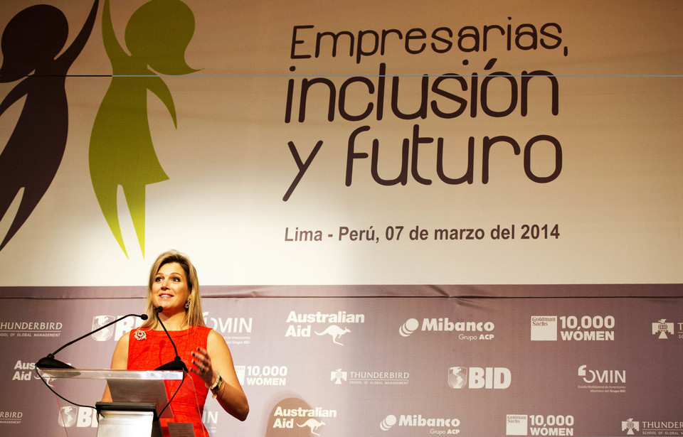 In Peru woont Koningin Máxima een rondetafelsessie bij over de voortgang van de nationale strategie voor Inclusieve Financiering. Ook brengt zij een veldbezoek aan een van de buitenwijken van Lima. Zij spreekt met vertegenwoordigers van organisaties over financiële producten en diensten en hun cliënten. Vrijdagochtend houdt Koningin Máxima een toespraak bij de afsluiting van het programma 'Strengthening Women Entrepreneurship'. Dit internationaal initiatief van onder anderen de Inter-American Development Bank, Mibanco, Thunderbird School of Global Management en de overheid van Australië is gestart in 2010 om 100.000 vrouwen in Peru te steunen bij het ondernemerschap. Hierbij is ook de echtgenote van president Humala aanwezig. Koningin Máxima neemt ook deel aan een rondetafelgesprek met publieke en private partners over de stand van zaken van elektronisch bankieren in Peru. Deze vorm van bankieren maakt financiële diensten ook voor mensen in afgelegen gebieden toegankelijk.