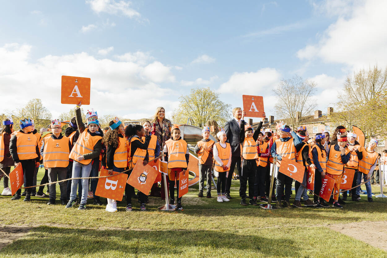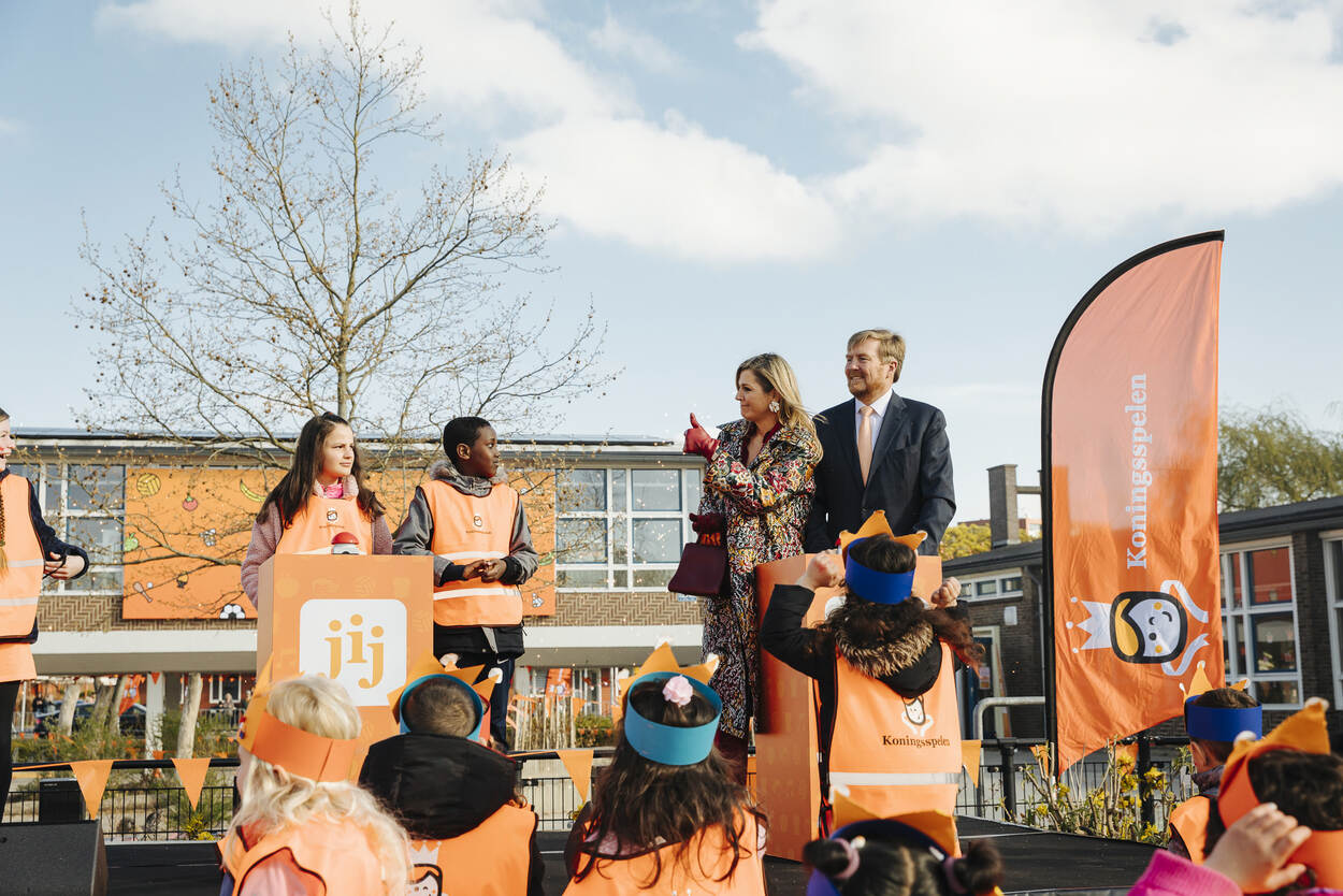 Het Koninklijk Paar geeft het startsein voor de landelijke opening van de Koningsspelen op Kindcentrum Vlinderslag in Amersfoort. De negende editie van de Koningsspelen draait met het thema ‘ik+jij=wij’ om het belang van samen.